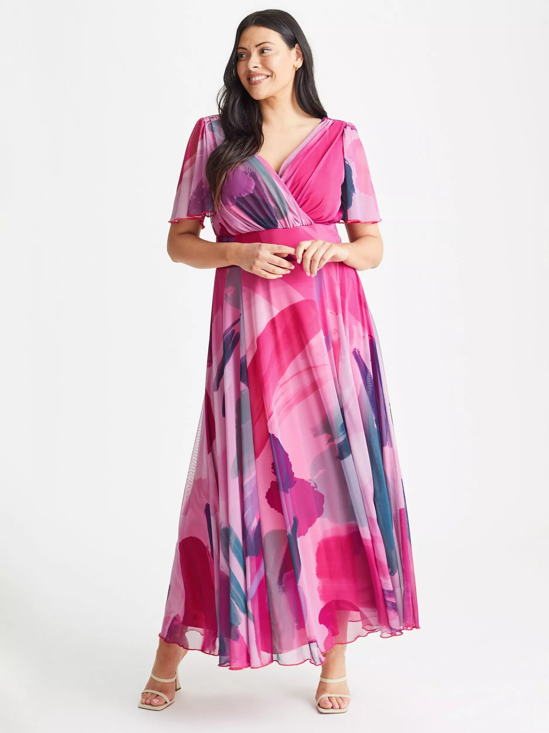 In a flattering fit that accentuates the waist, this floor-length dress from Scarlett & Jo is crafted from a blend of fabrics. Effortlessly flattering thanks to a fuss-free v-neckline and short sleeves, this style receives a vibrant update with the help of an abstract print.