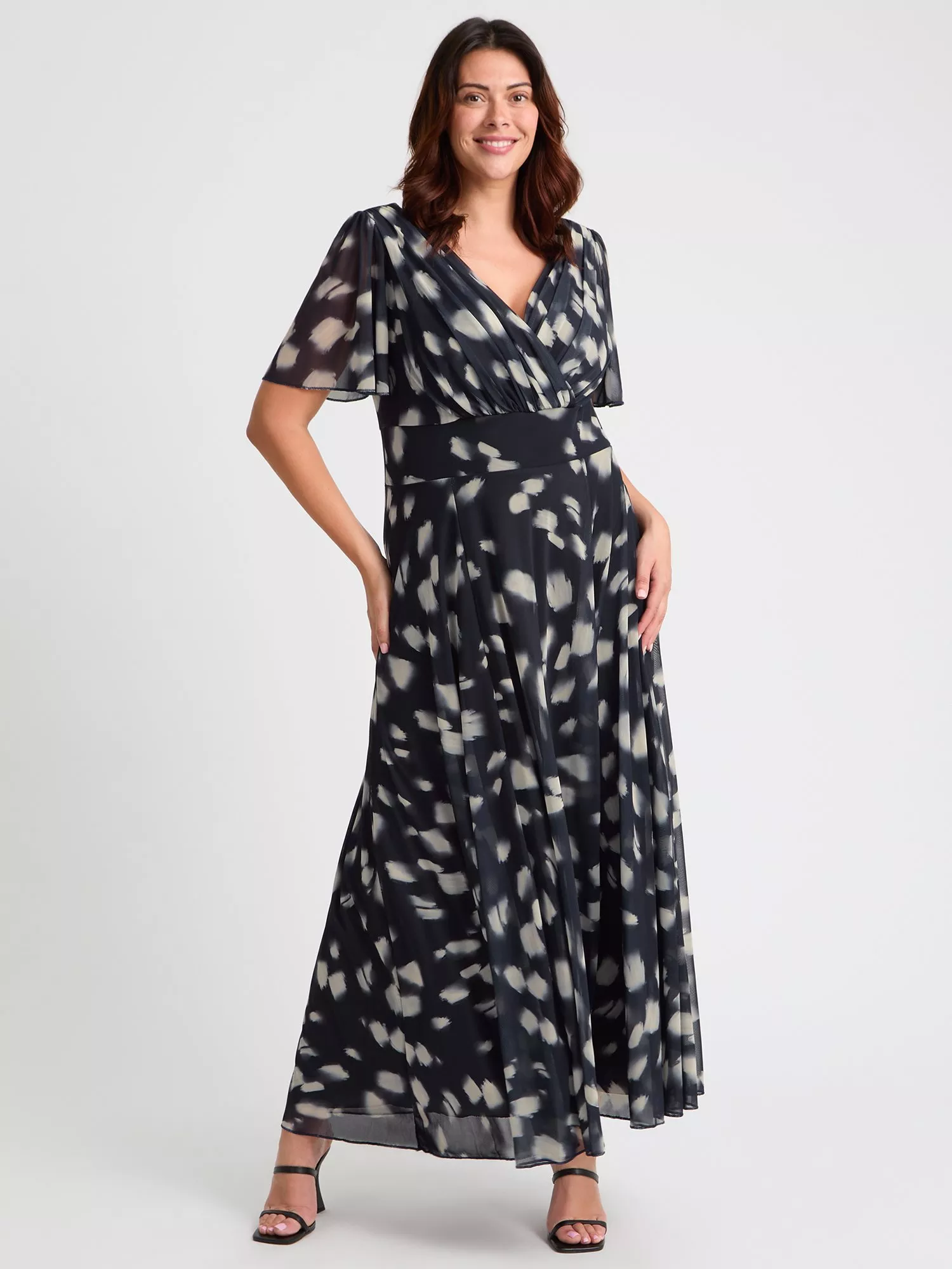 This Isabelle Float Sleeve Maxi Dress features a gorgeous print on POWERFIT® soft and flowy stretch mesh. Featuring floaty angel sleeves and a wrap V neckline supported by the MagicBand®, an in-built corset enhances your figure. Perfect for any occasion, this is a truly sensational maxi dress.