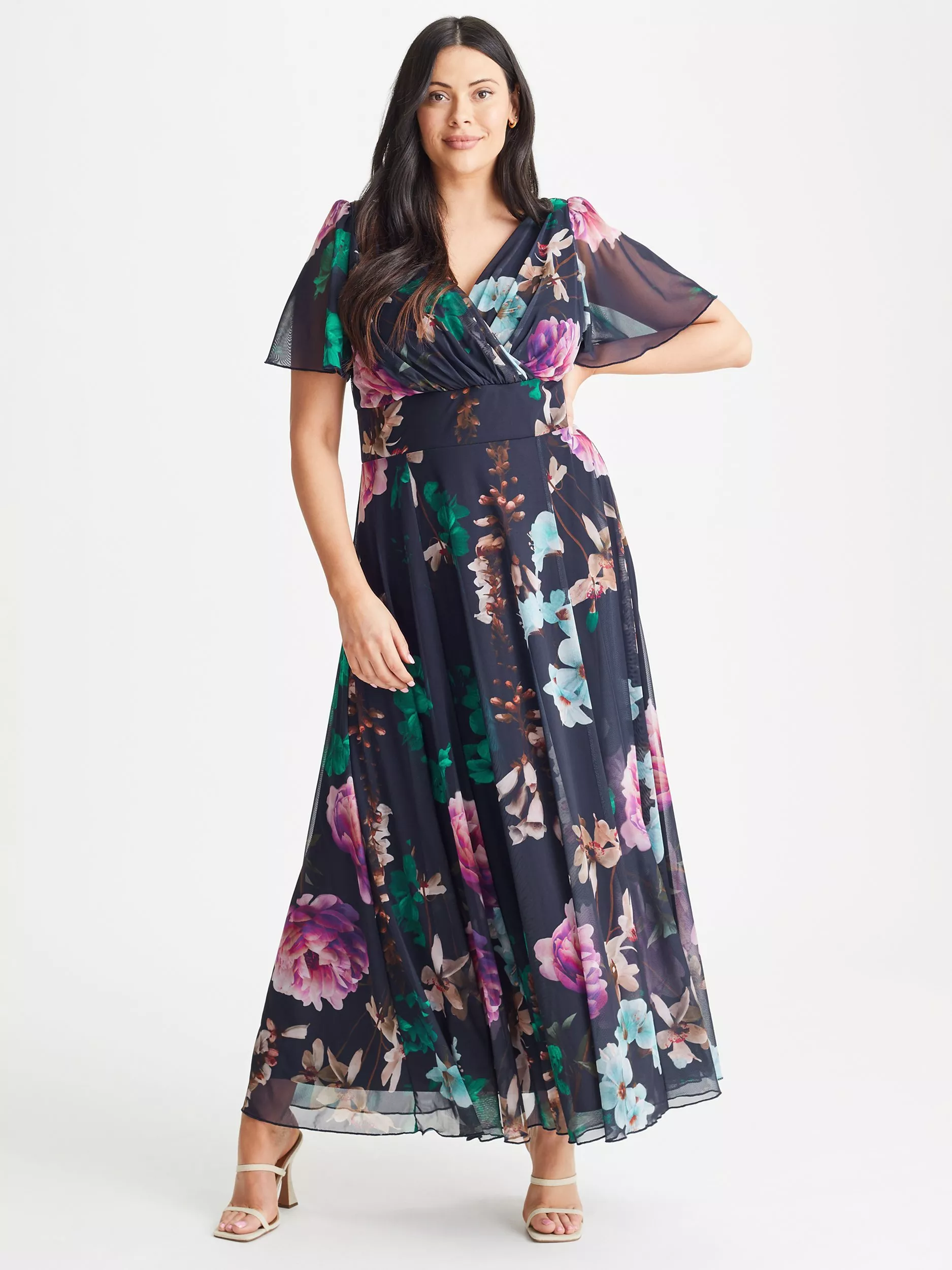 Designed in a fuss-free A-line style, this maxi dress from Scarlett & Jo is made using a blend of fabrics. With a fuss-free but smart v-neckline and short sleeves, it effortlessly charms with a timeless floral.