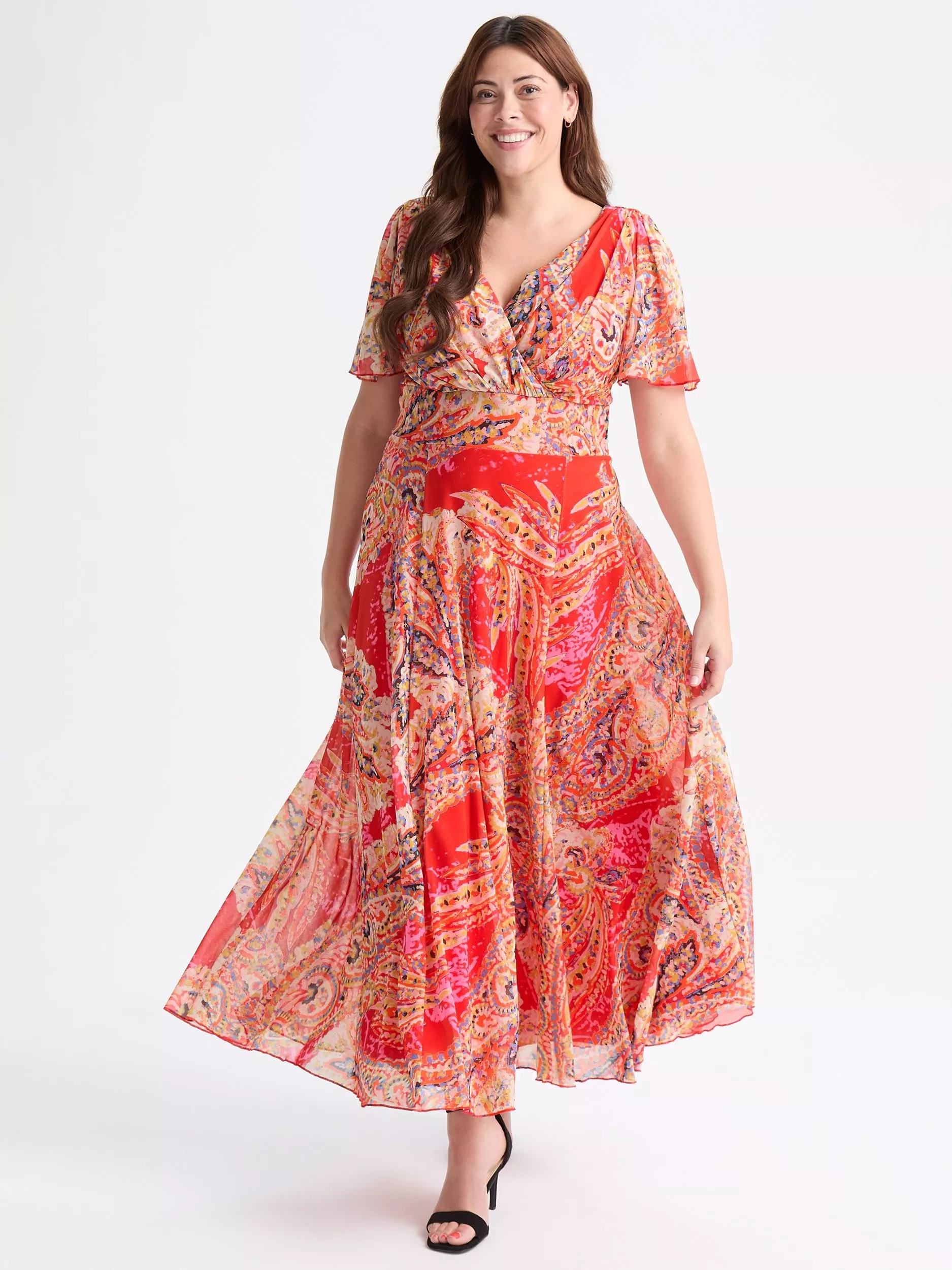 Scarlett & JoIsabelle Paisley Float Sleeve Maxi Dress, Orange/Multi