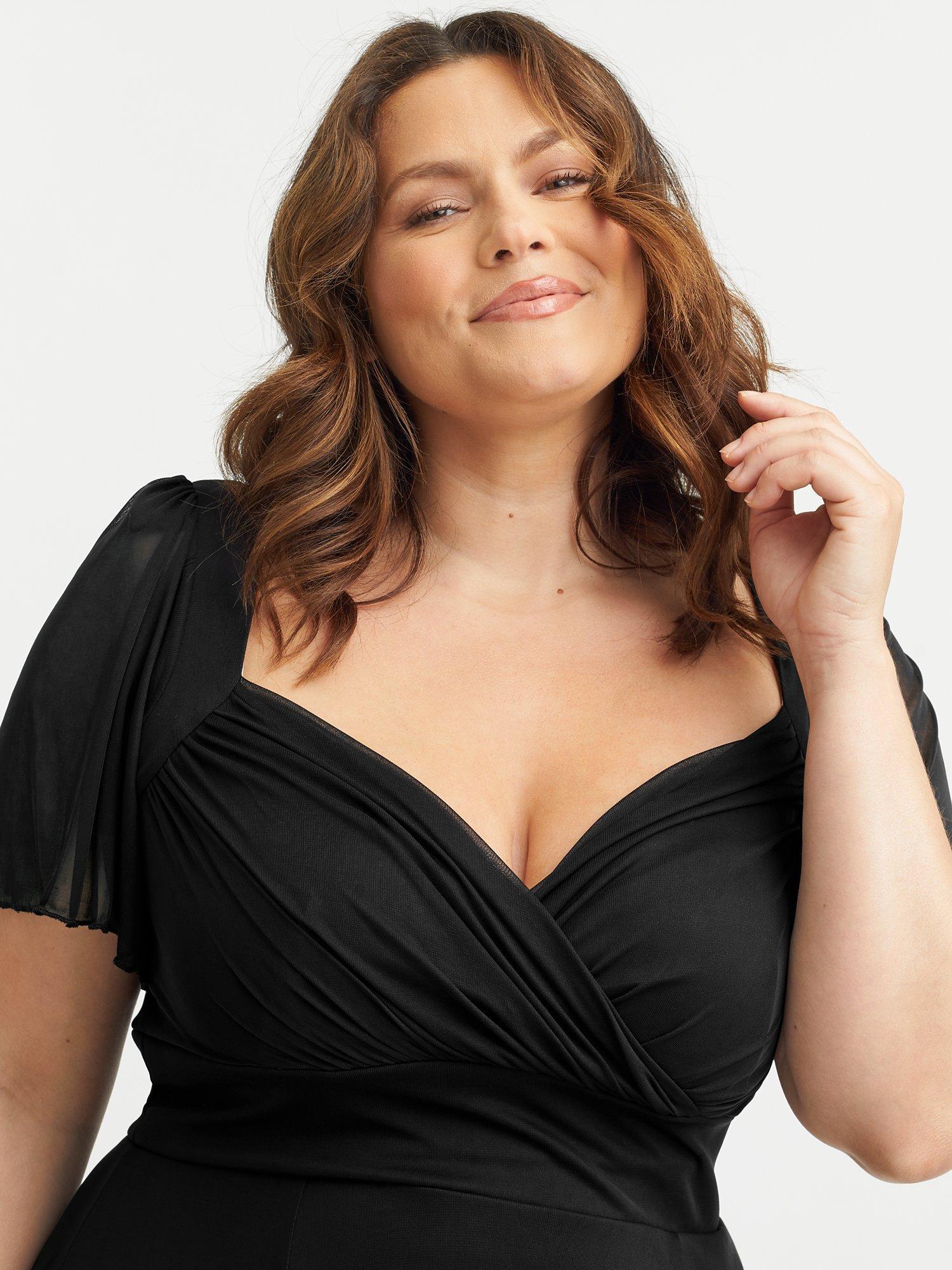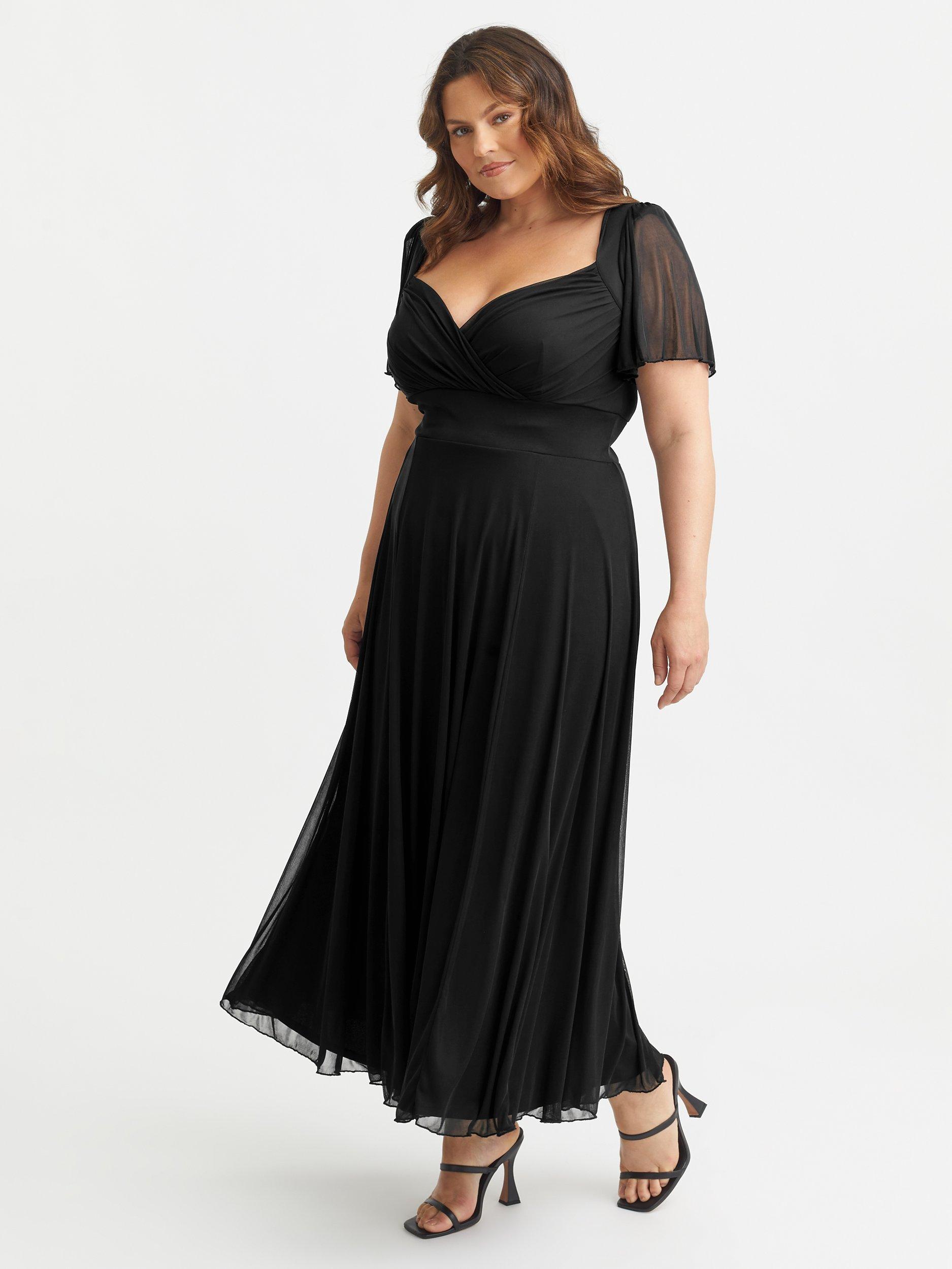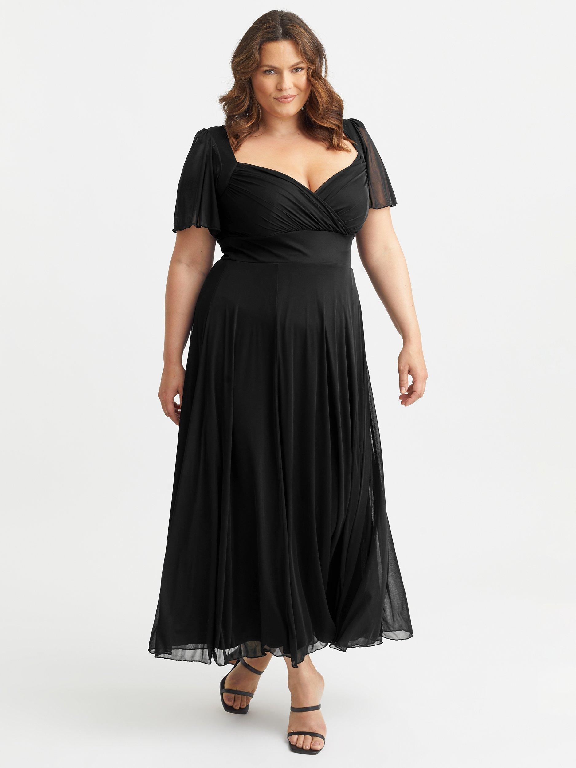 In an easy to wear A-line shape, this floor-length dress from Scarlett & Jo is crafted from a blend of fabrics. A classic option thanks to the wrap over neckline and short sleeves, this style is kept trend-free so that it'll sit in your closet for years to come.
