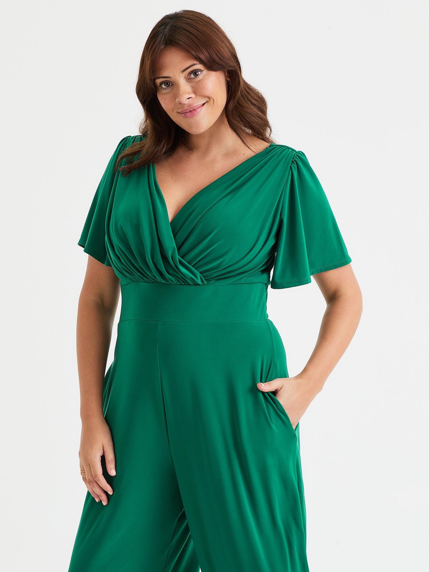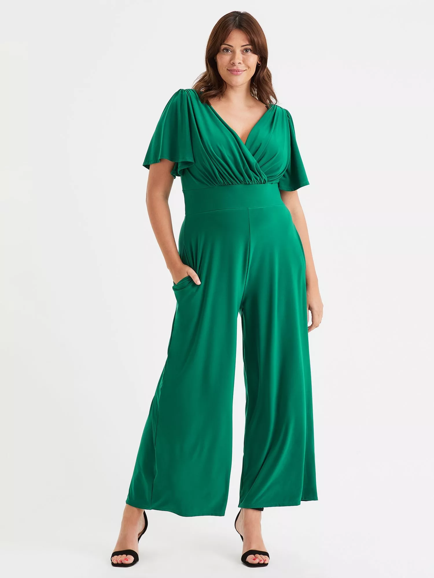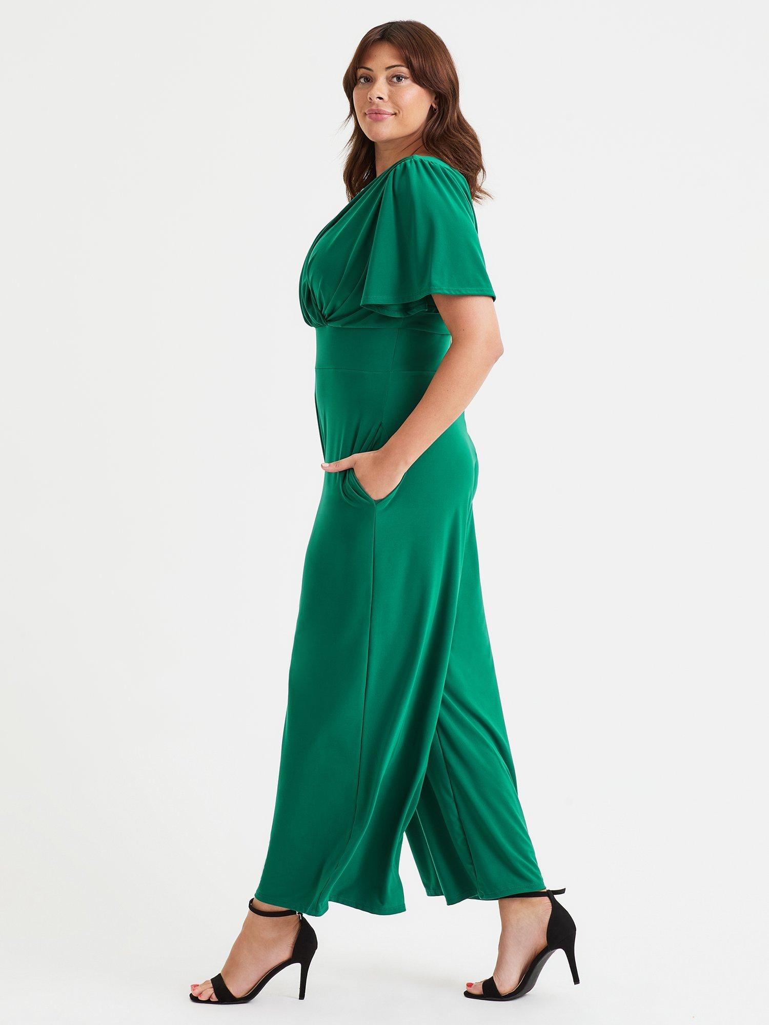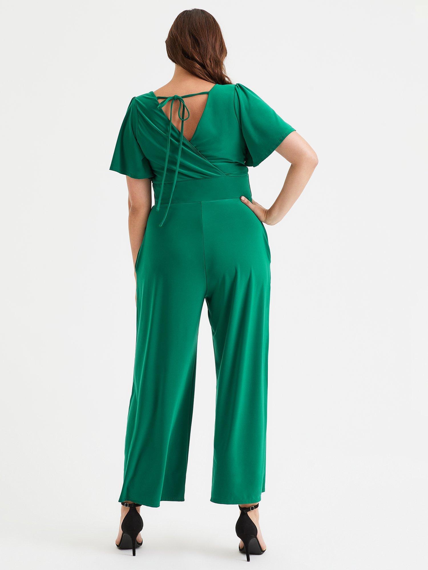 This lounge jumpsuit is made in exclusive Silk Touch Crepe By Scarlett & Jo. It is a very fine, soft and substantial jersey. This version comes with the MagicBand® to help accentuate curves and create hidden support. Designed to flatter all body shapes, this jumpsuit has pockets, angel sleeves, a v shaped neckline front and back, soft shoulder pads and wide trouser legs. Dress it up or down for a fabulous look!