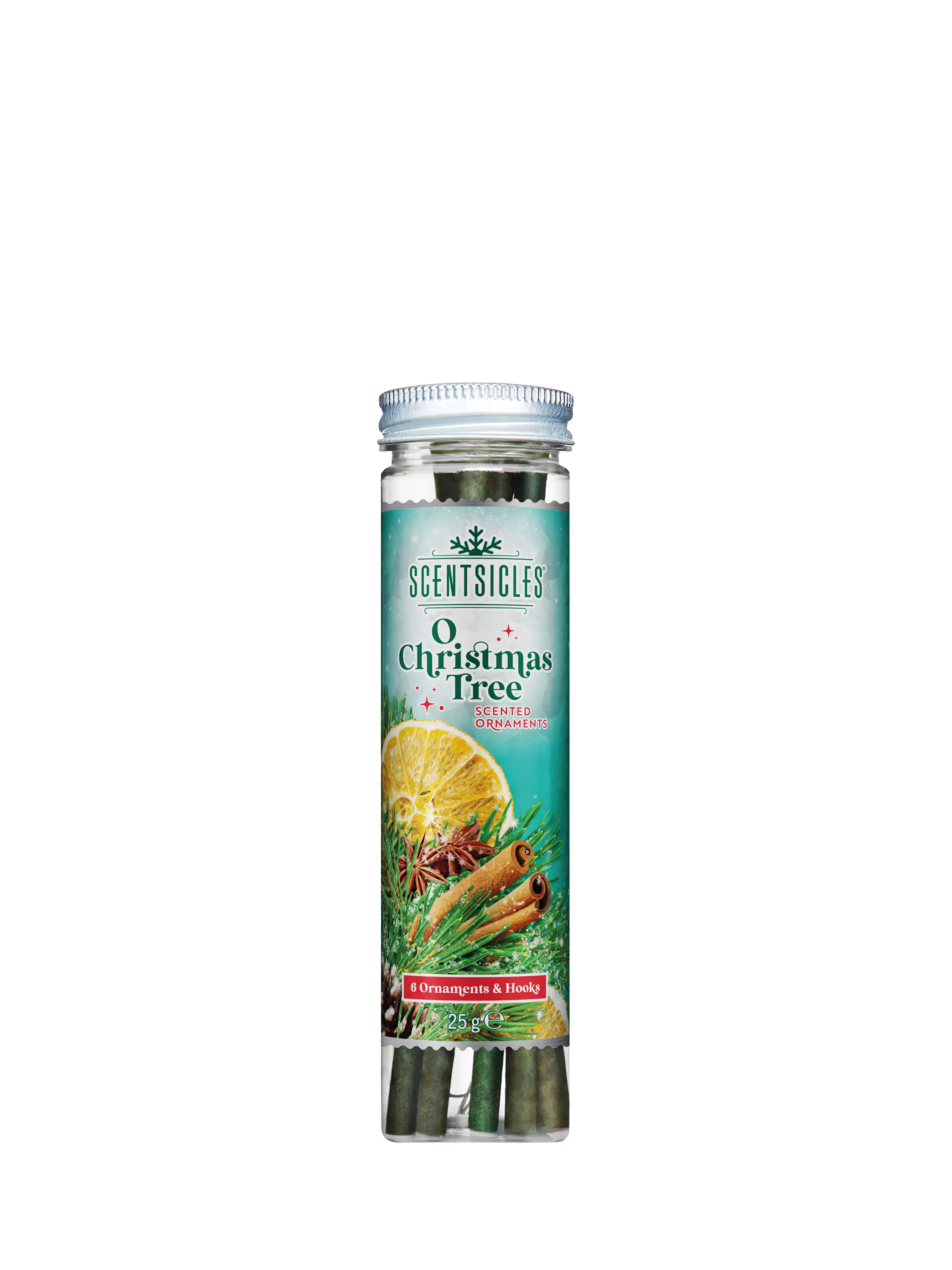 Bring the scent of Christmas to your home with these tree hanging decorations. Each stick has 30 days of fragrance. Packed in a handy storage tube with hanging hooks included.