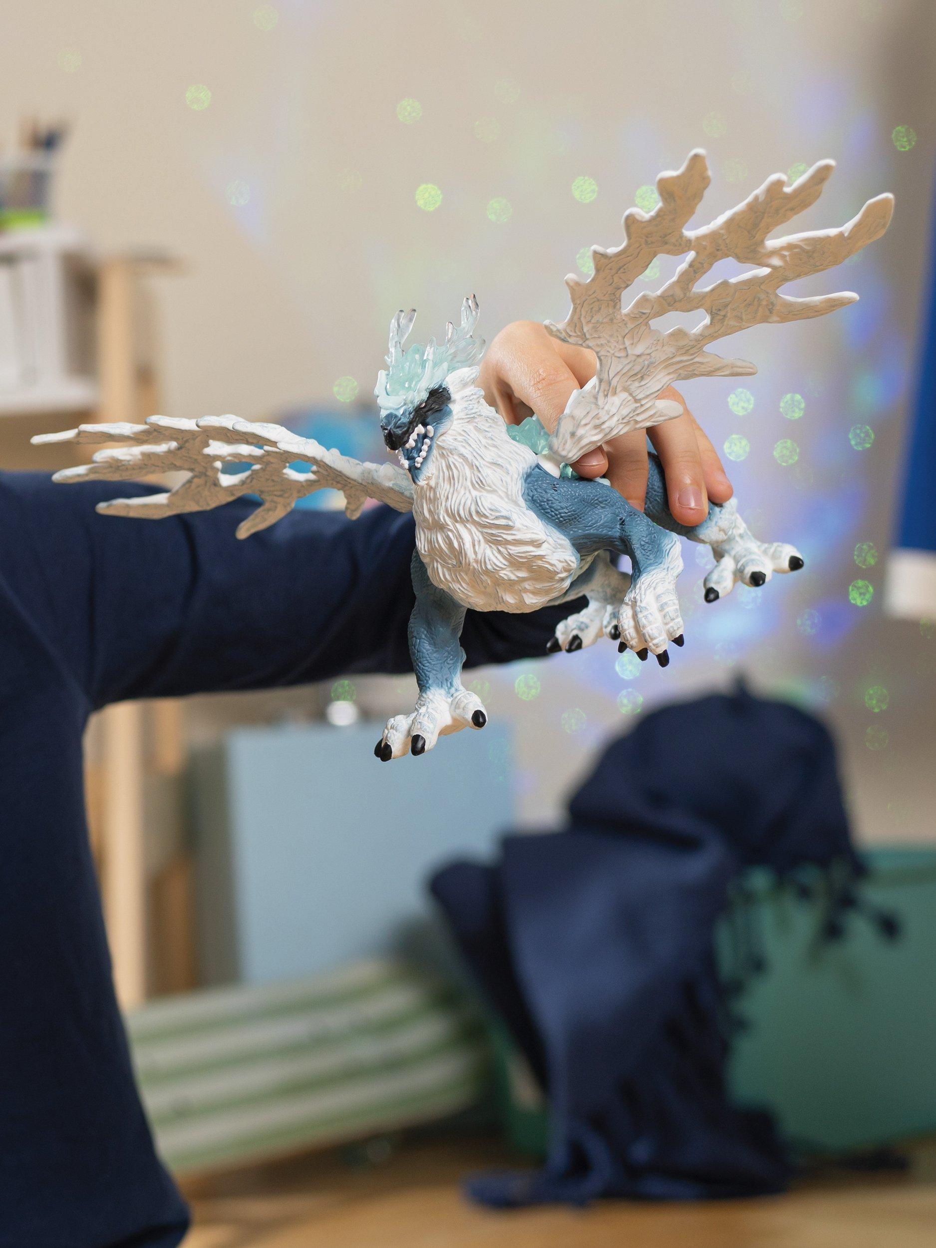 Is danger lurking down there? The dragon does not hesitate: It folds its silver wings close to its body and plunges into the depths. The attacker on the ground won't know what hit it. As if from out of nowhere, the Ice Dragon appears, shaking its silver mane. It opens its beak to reveal a set of needle-sharp teeth. Threateningly, the dragon flexes its muscles and tears deep furrows in the ground with its claws. Together with its comrades-in-arms, Ice Monster and Snow Wolf, it's off to battle they go! (Figures sold separately.)
