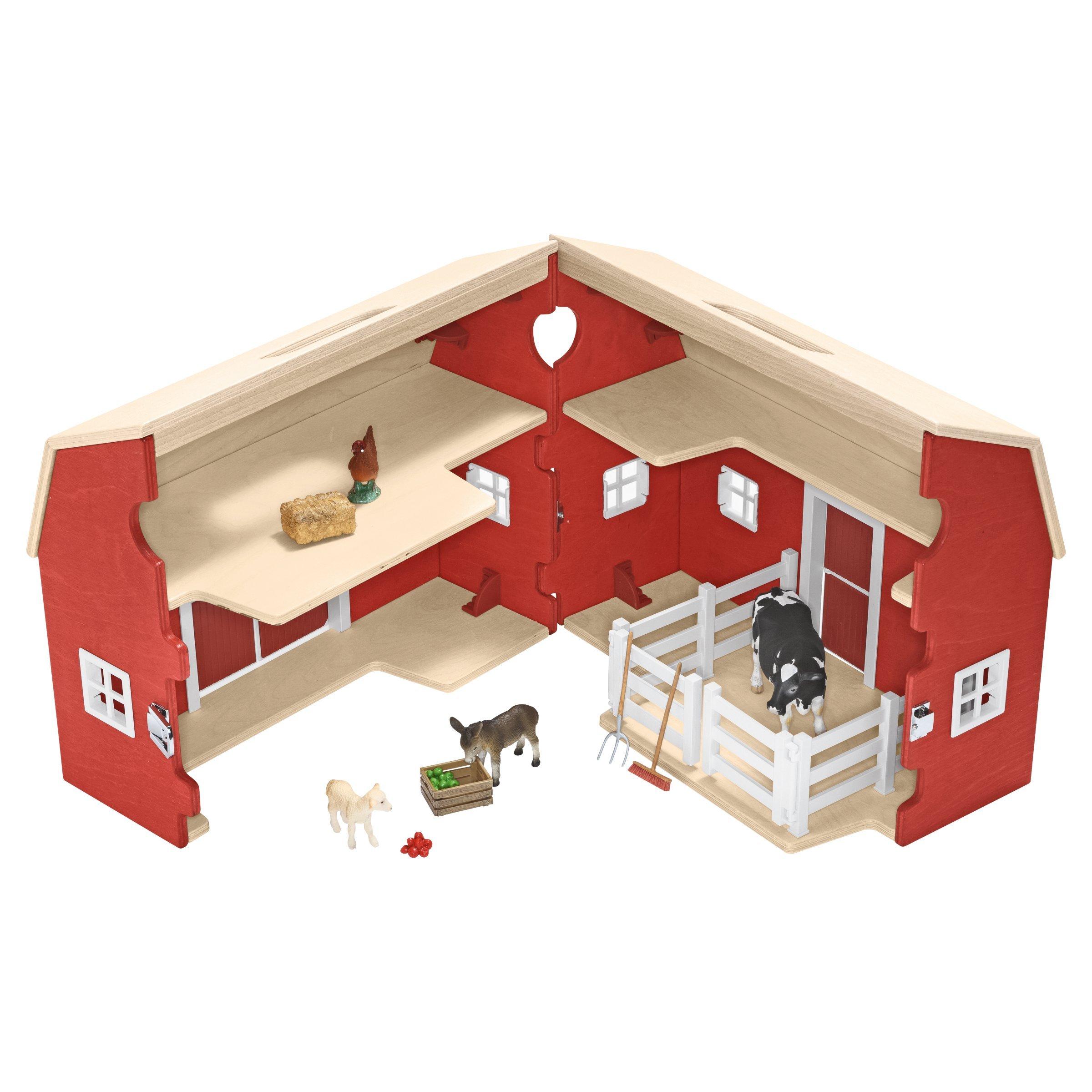 Build up a brilliant farmyard scene with these beautifully detailed barn and farm animals set from Schleich. The barn features an easy-to-carry handle to make this portable set of figures a perfect gift for any farmyard fan. The barn opens up to create an enchanting playset including a donkey foal, lamb, hen, cow, broom, pitchfork, feeding box, straw and apples.
