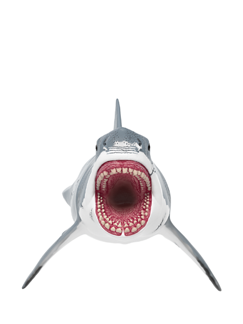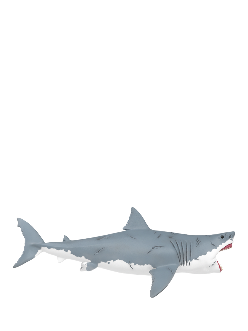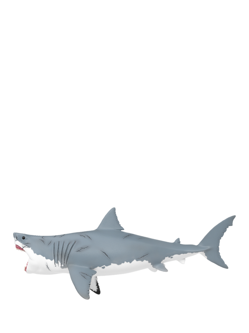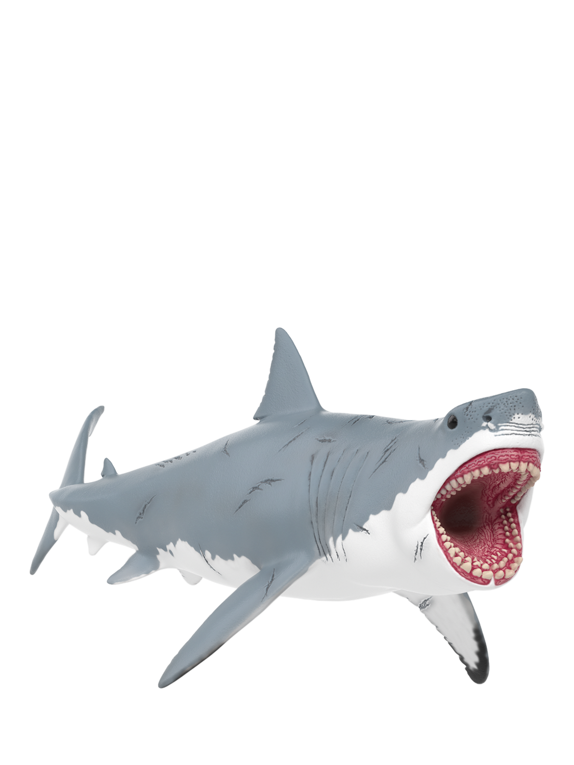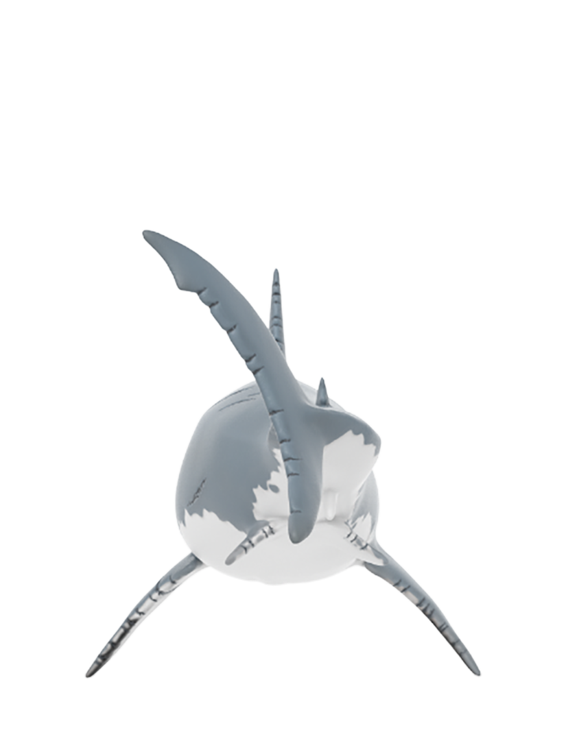 The Megalodon, with its grey, scarred skin, is a real prehistoric giant. Despite its impressive size of around 17 meters and a weight of up to 60 tons, it swims through the sea at lightning speed – always on the lookout for prey. No wonder, because of its size it is always hungry and has to eat a lot. He opens his large mouth threateningly and reveals his sharp shark teeth. Once he grabs his prey, there’s no escape!