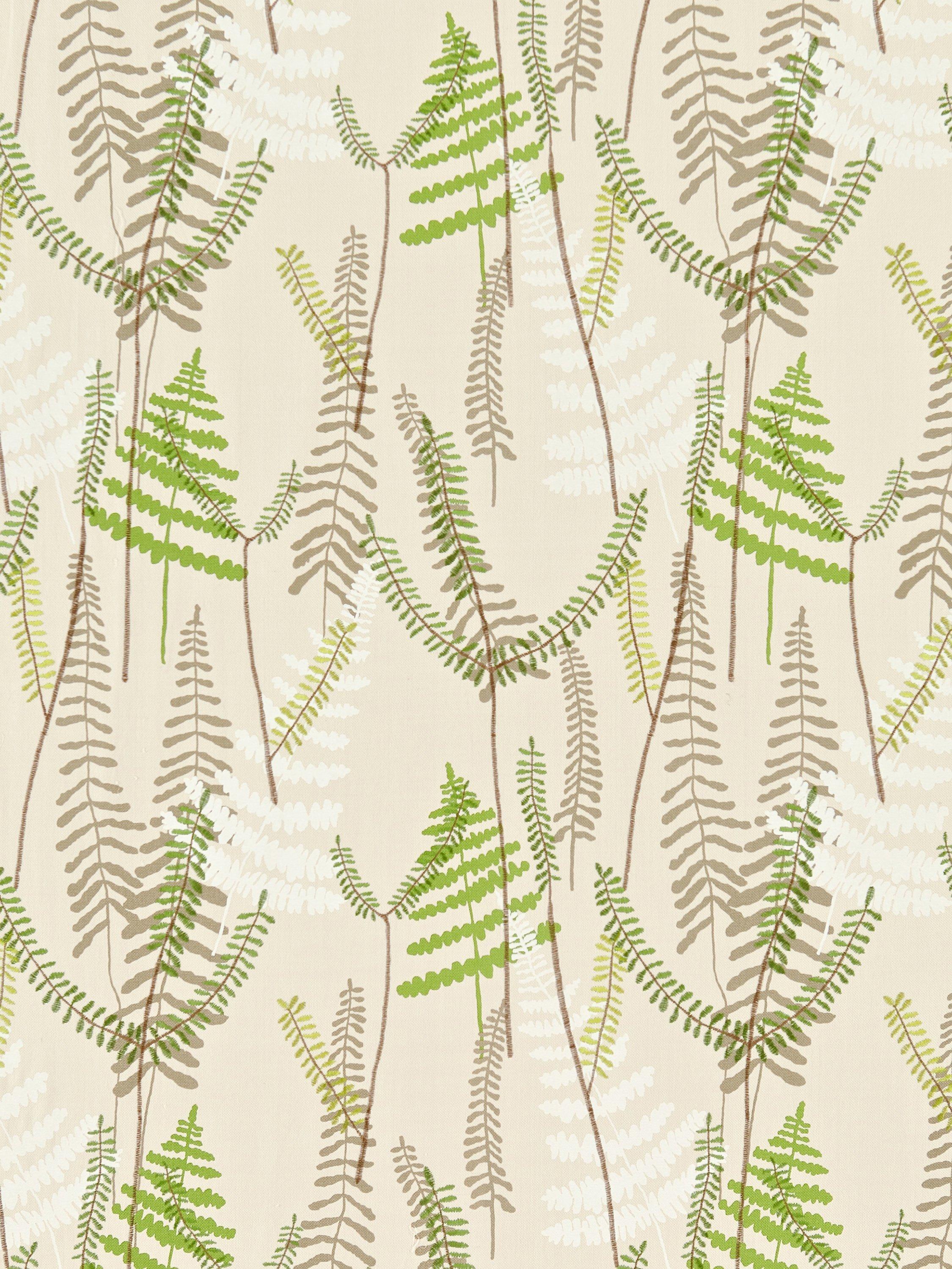 Athyrium is a cotton blend fabric from Scion which uses both print and embroidery techniques to create the design of overlapping fern leaves and fronds.