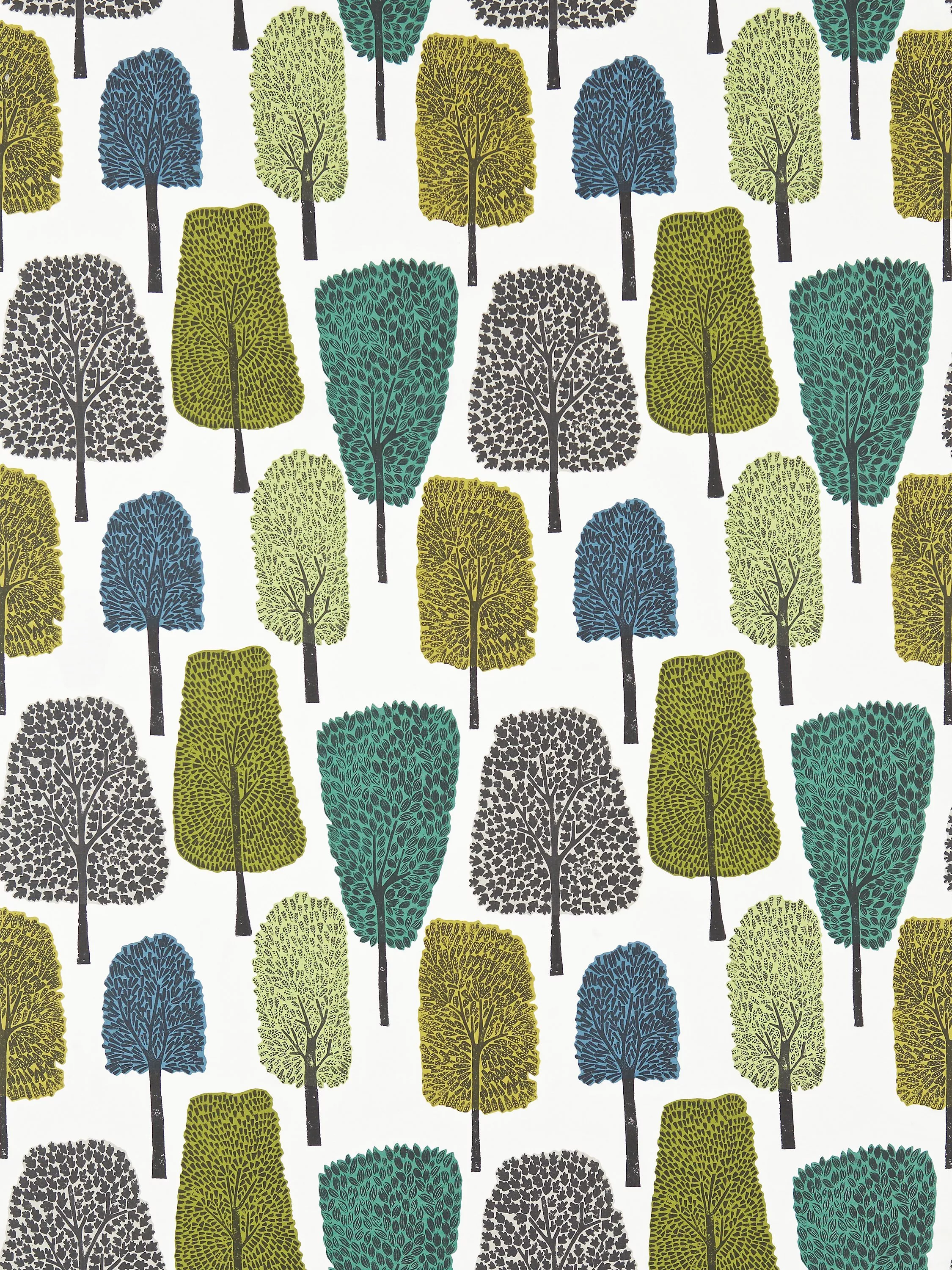 With a bold woodland design, Cedar is a cotton fabric from Scion that features contemporary, stylised trees. The branches, trunks and leaves of the trees are lino-printed and sit over blocks of colour to create the repeating motif.