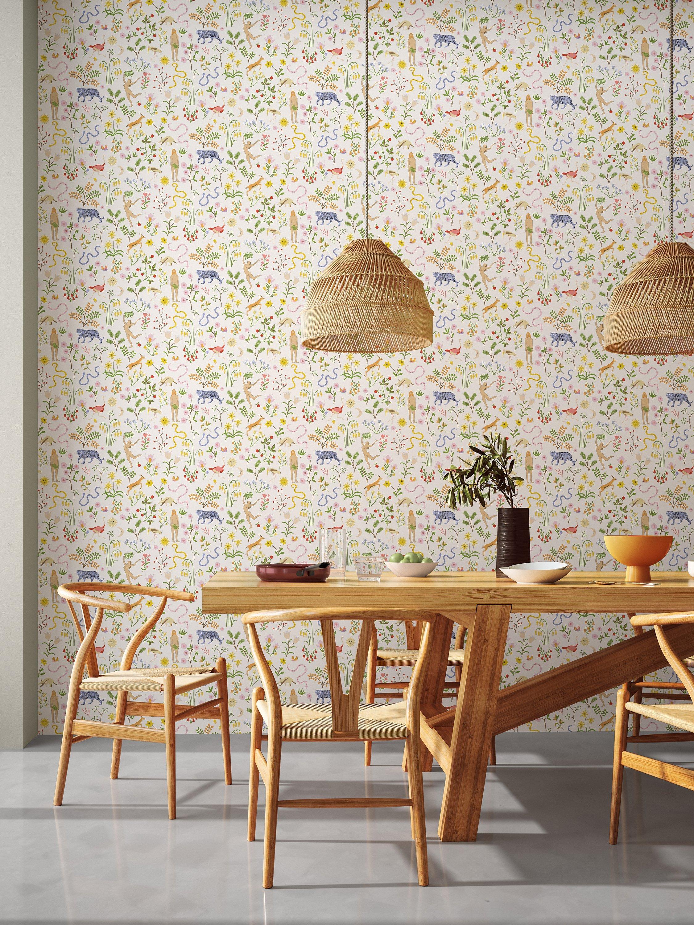 Hand painted in the Scion studio, this free-spirited and slightly risqué scene makes for the perfect statement wallpaper!