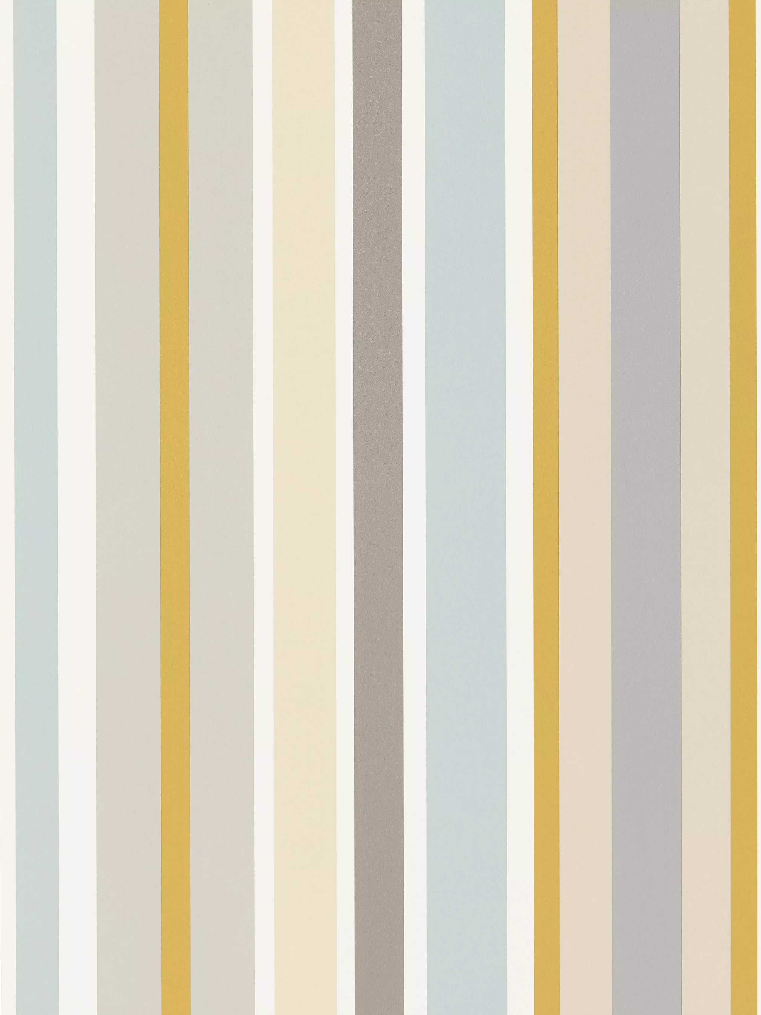 A deckchair inspired stripe wallpaper in a colour palette influenced by seaside fun, perfect for both boys' and girls' rooms.