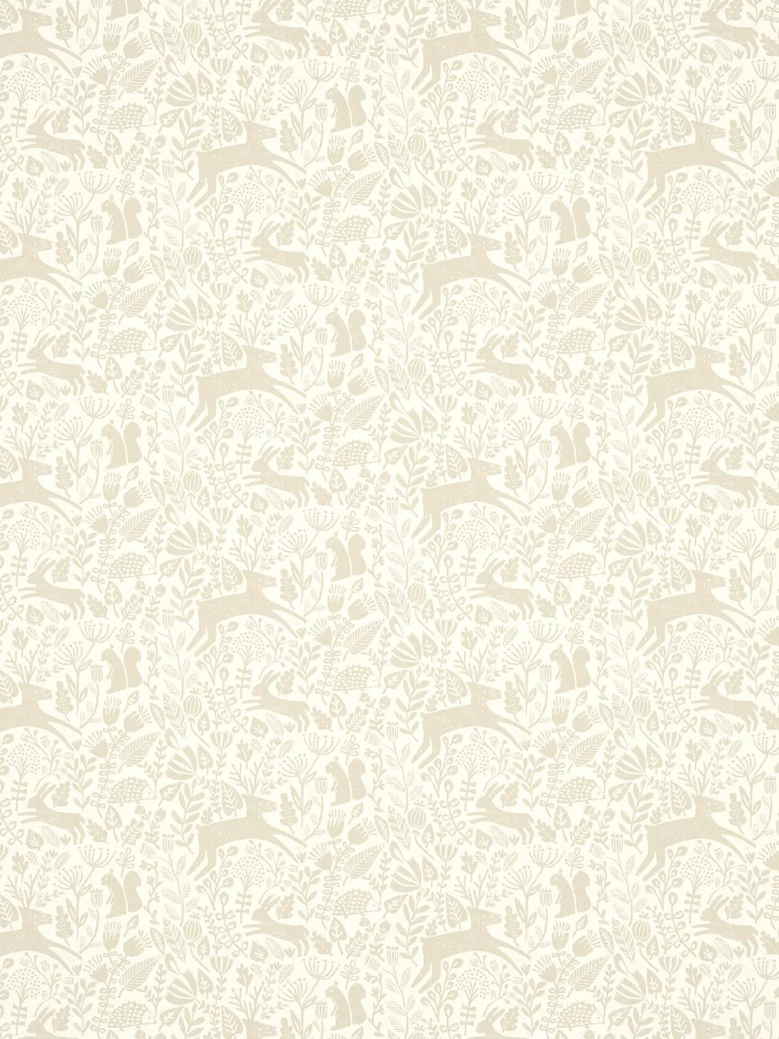 Displaying a folksy style, this woodland scene wallpaper is complete with deer, squirrels, hedgehogs and hares. Originally produced as a lino-cut, Kelda is perfect for all four walls.
