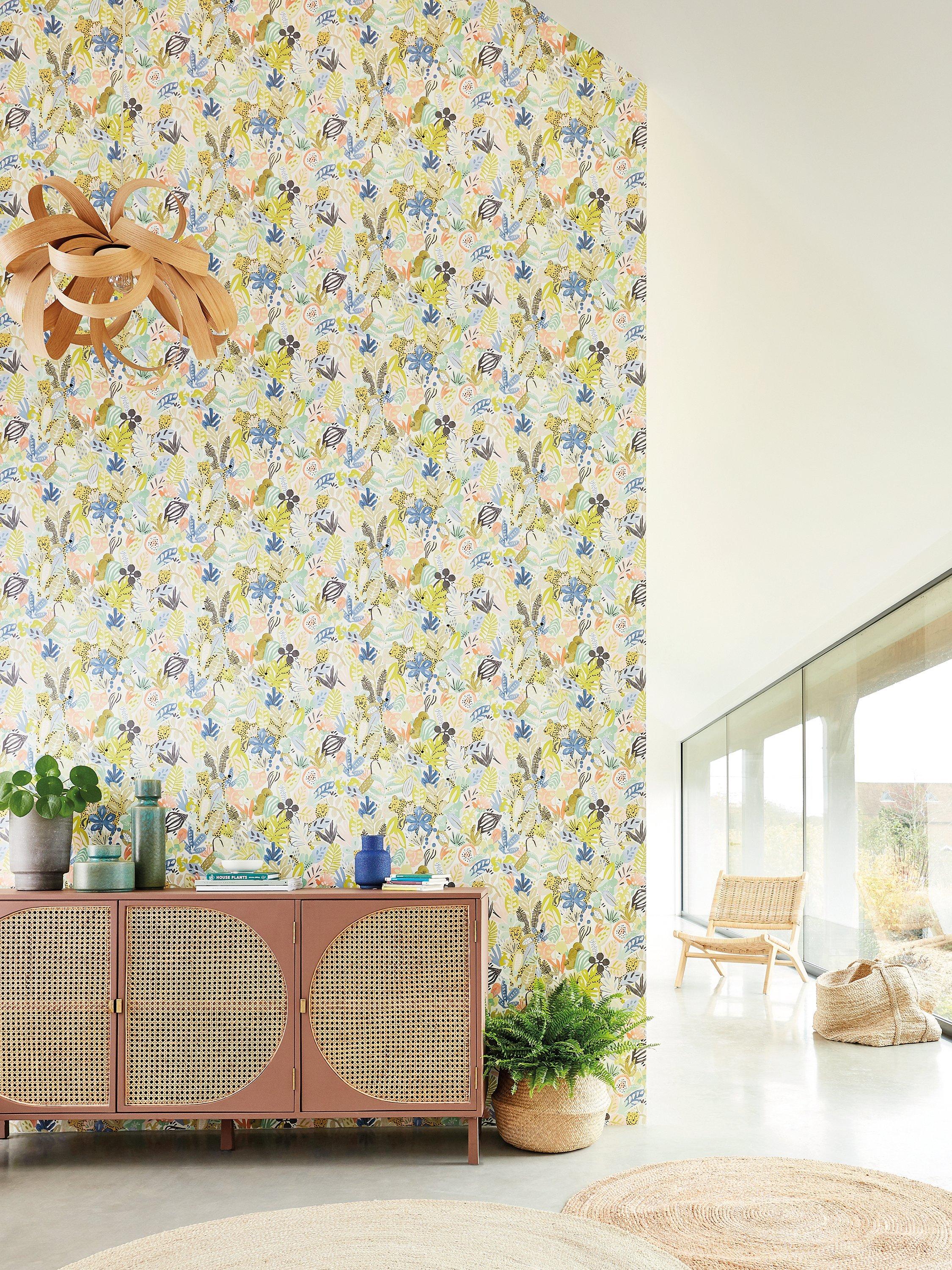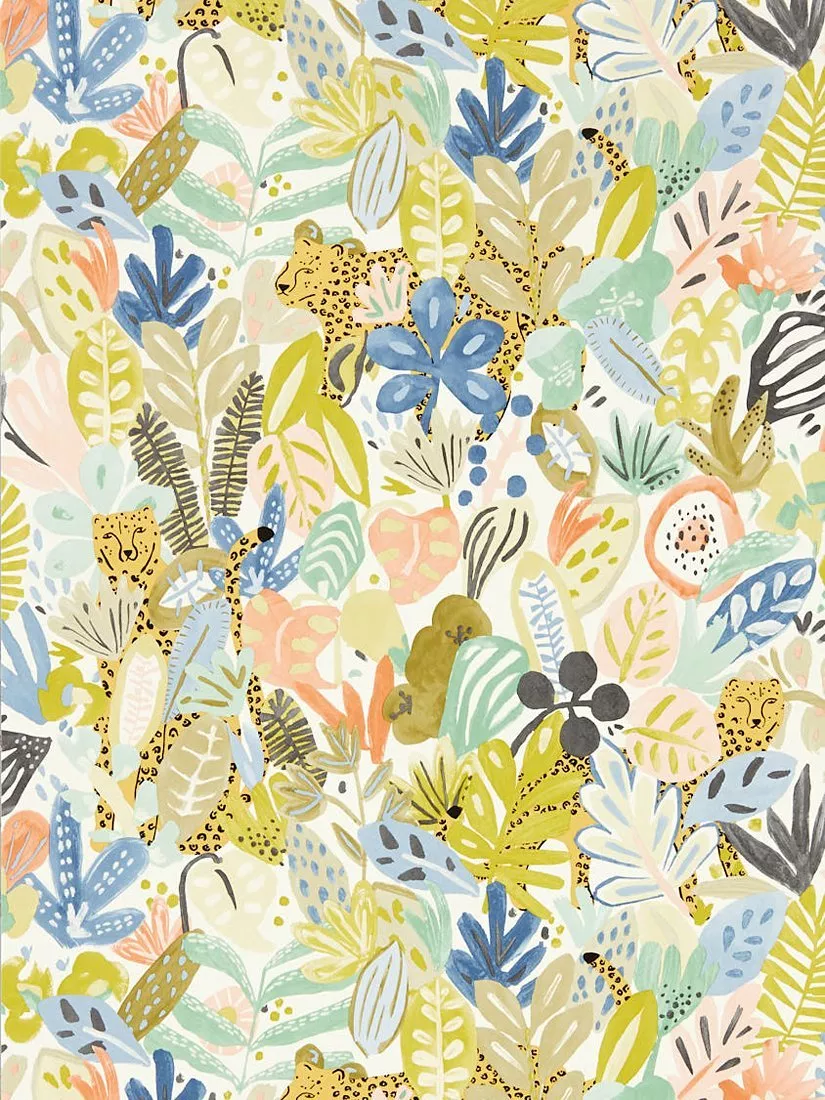 Can you spot Lionel the Leopard hiding deep amongst the tropical foliage? A wallpaper full of personality and vivacious colours, Kumana livens up the home, co-ordinating brilliantly with blush, blue and zesty tones.