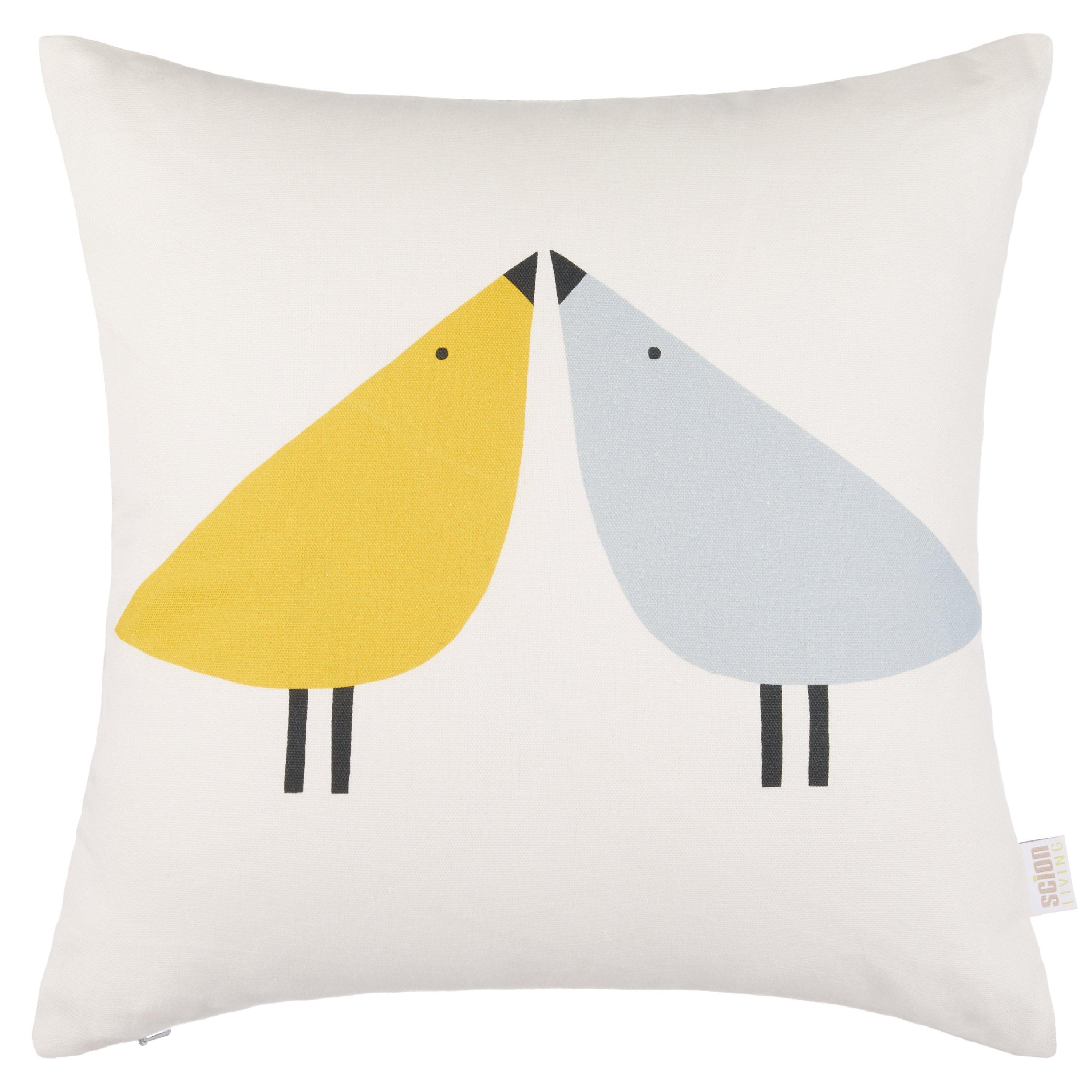 A sweet kissing birds design with a geometric look. Use to bring quirky, Scandi style to a living room or child's bedroom.