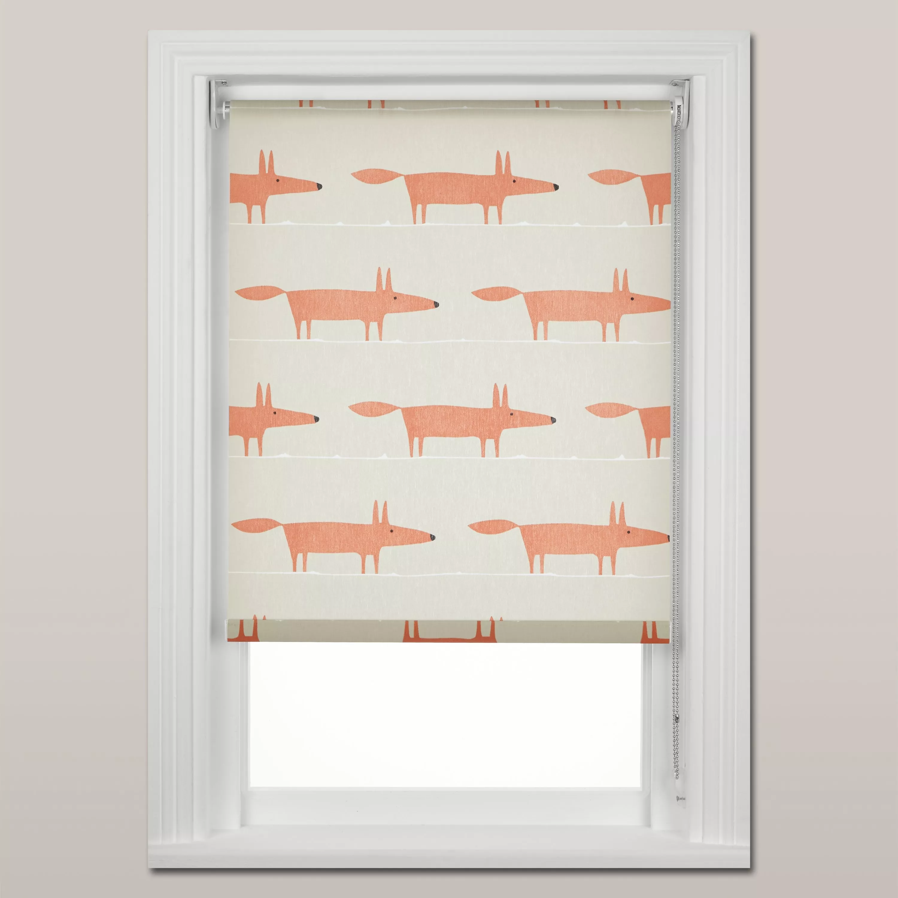 Fun roller blinds featuring Scion's popular Mr. Fox print. The fabric is moisture resistant, making it suitable for use in kitchens and bathrooms and the aluminium groove tube allows it to be standard or reverse rolled.