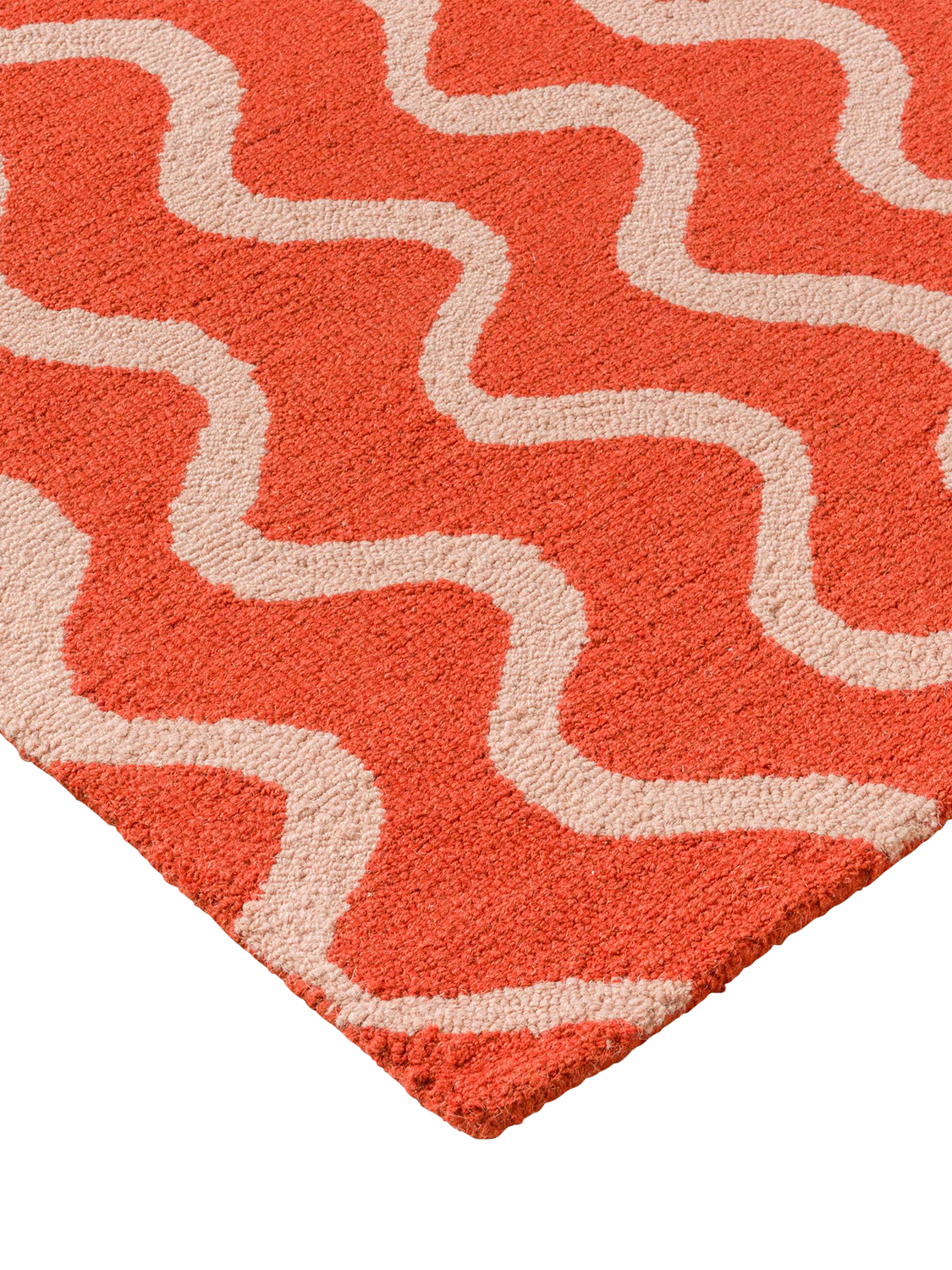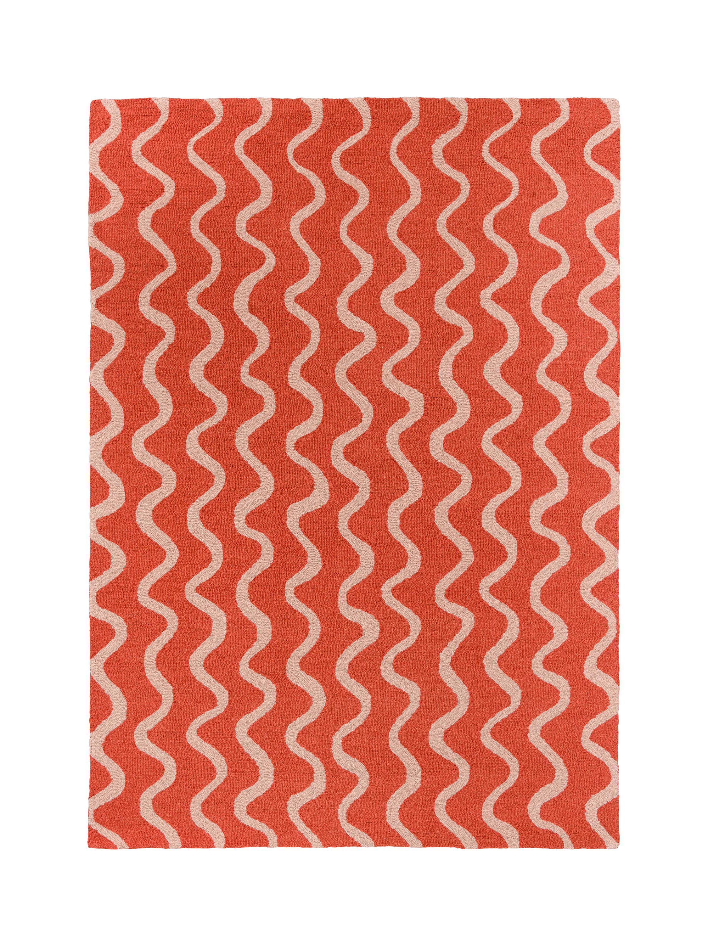Streams wiggle up and down this large-scale rug design. A perfect coordinate for homes. Why have a stripe when you can have a ribbon?