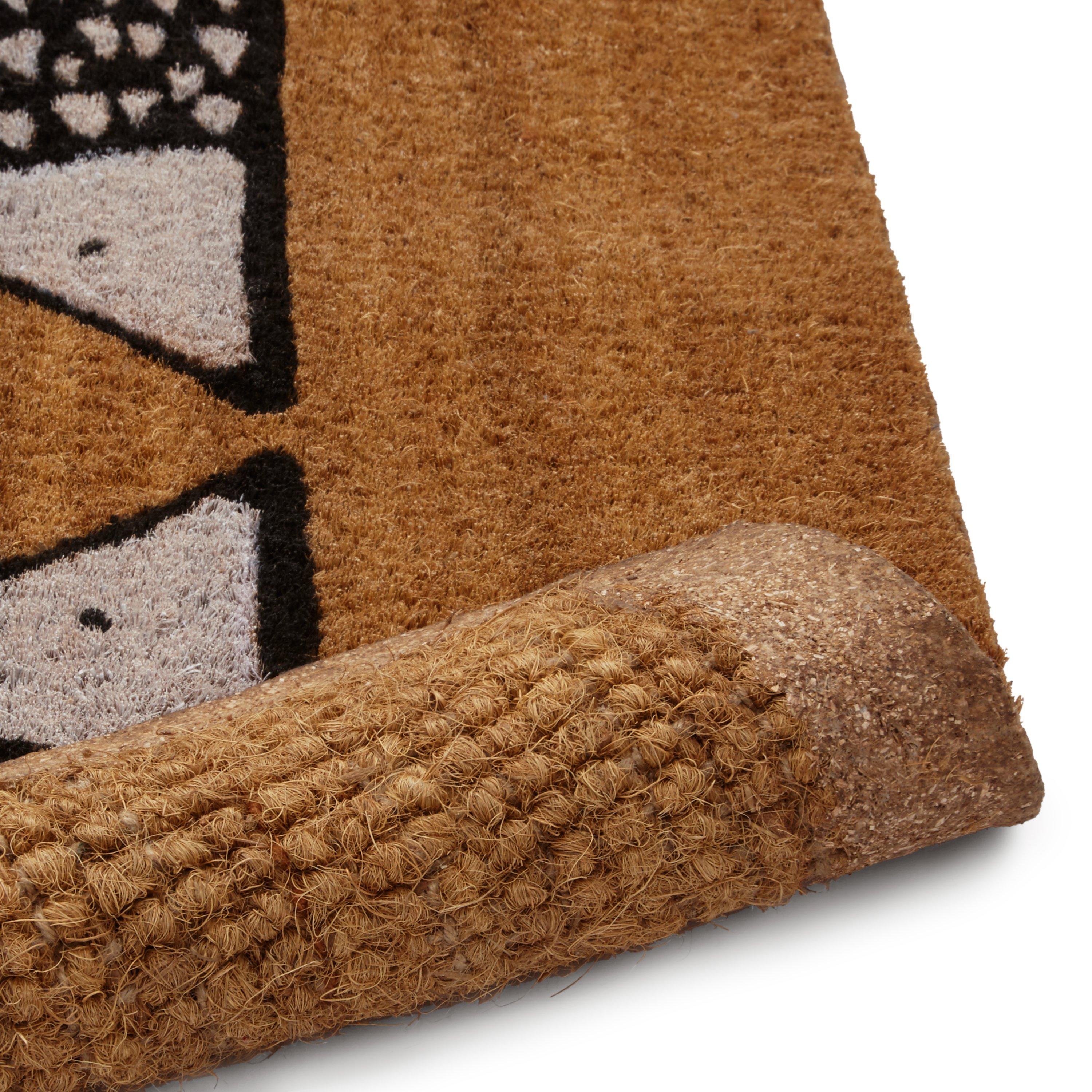 This thick, hard-wearing natural coir pile doormat feature's Scion's Spike the Hedgehog design. Coir makes an excellent material for doormats as its roughness is good for removing mud. All it needs is a brush to keep it clean.