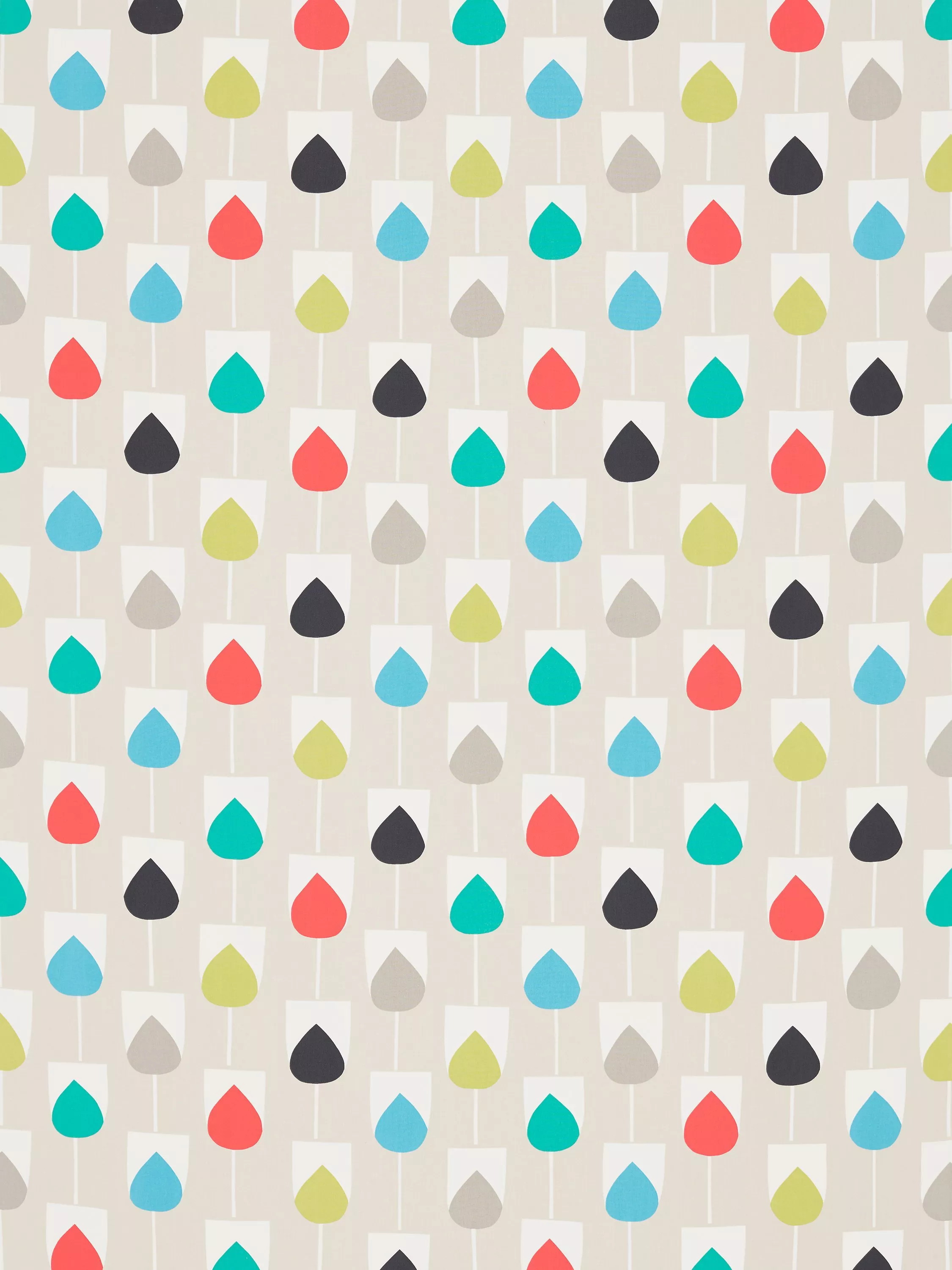 Stylised, graphic tulips feature on this printed cotton fabric from Scion. It's a colourful choice for home furnishings.