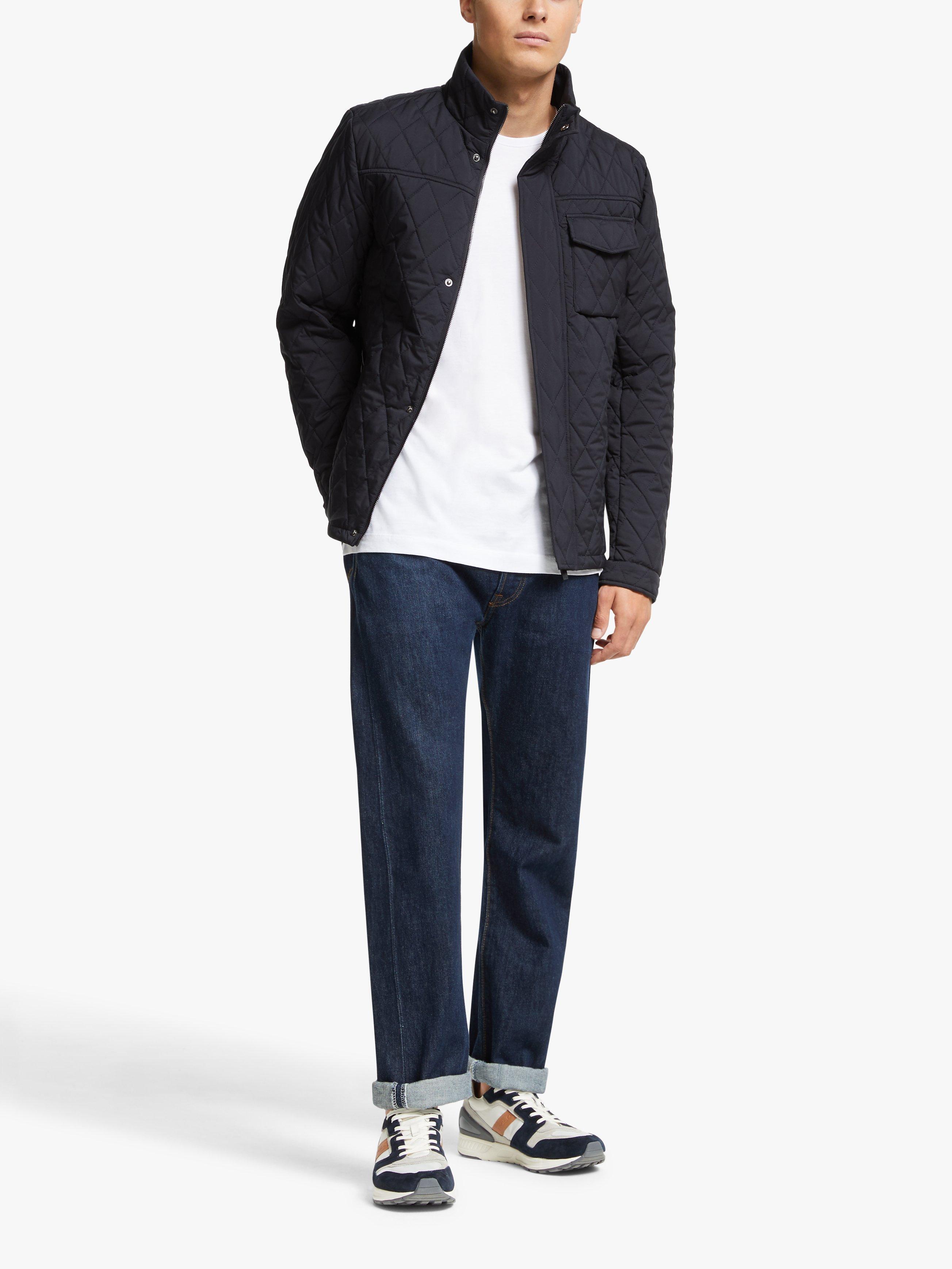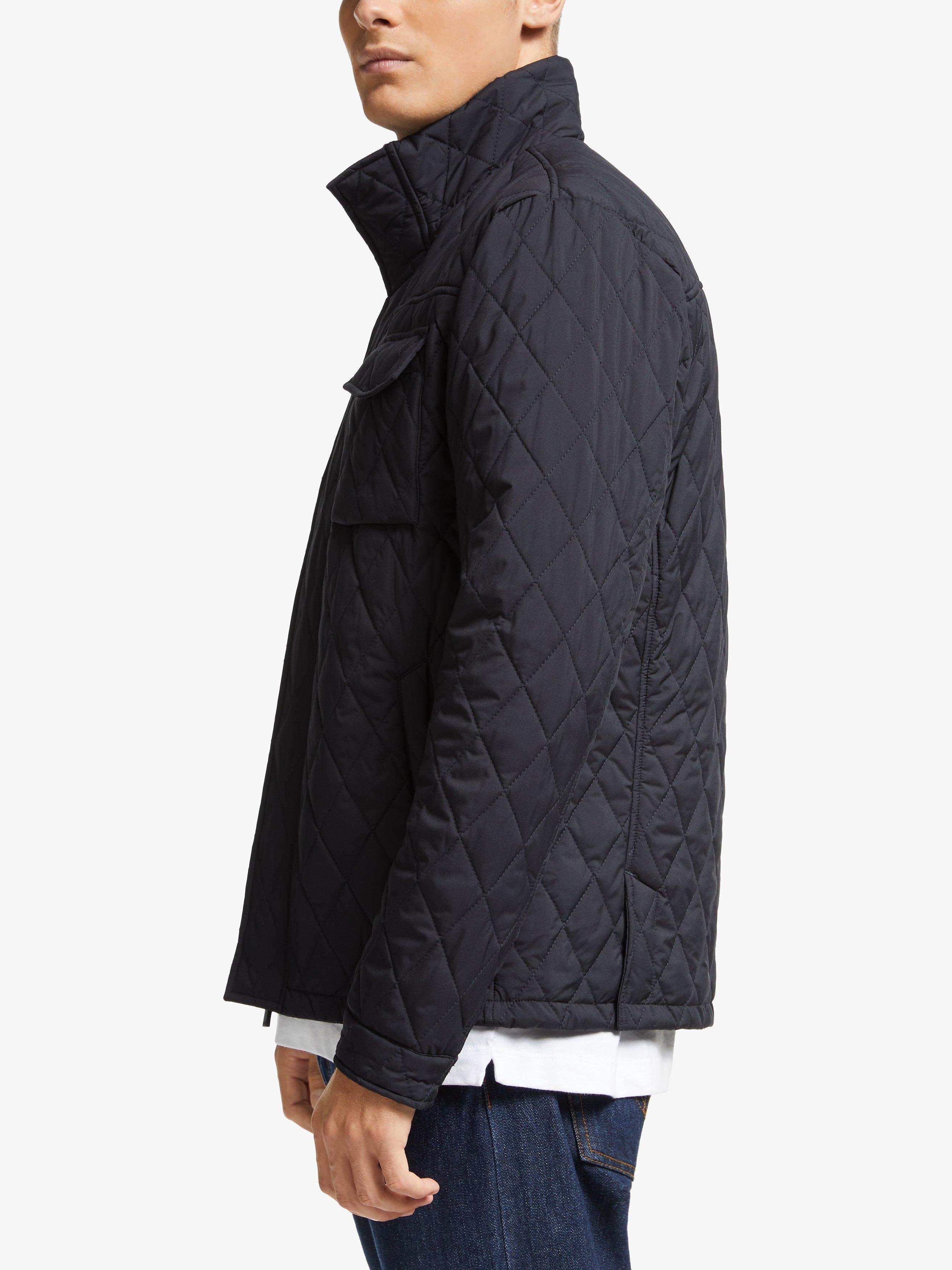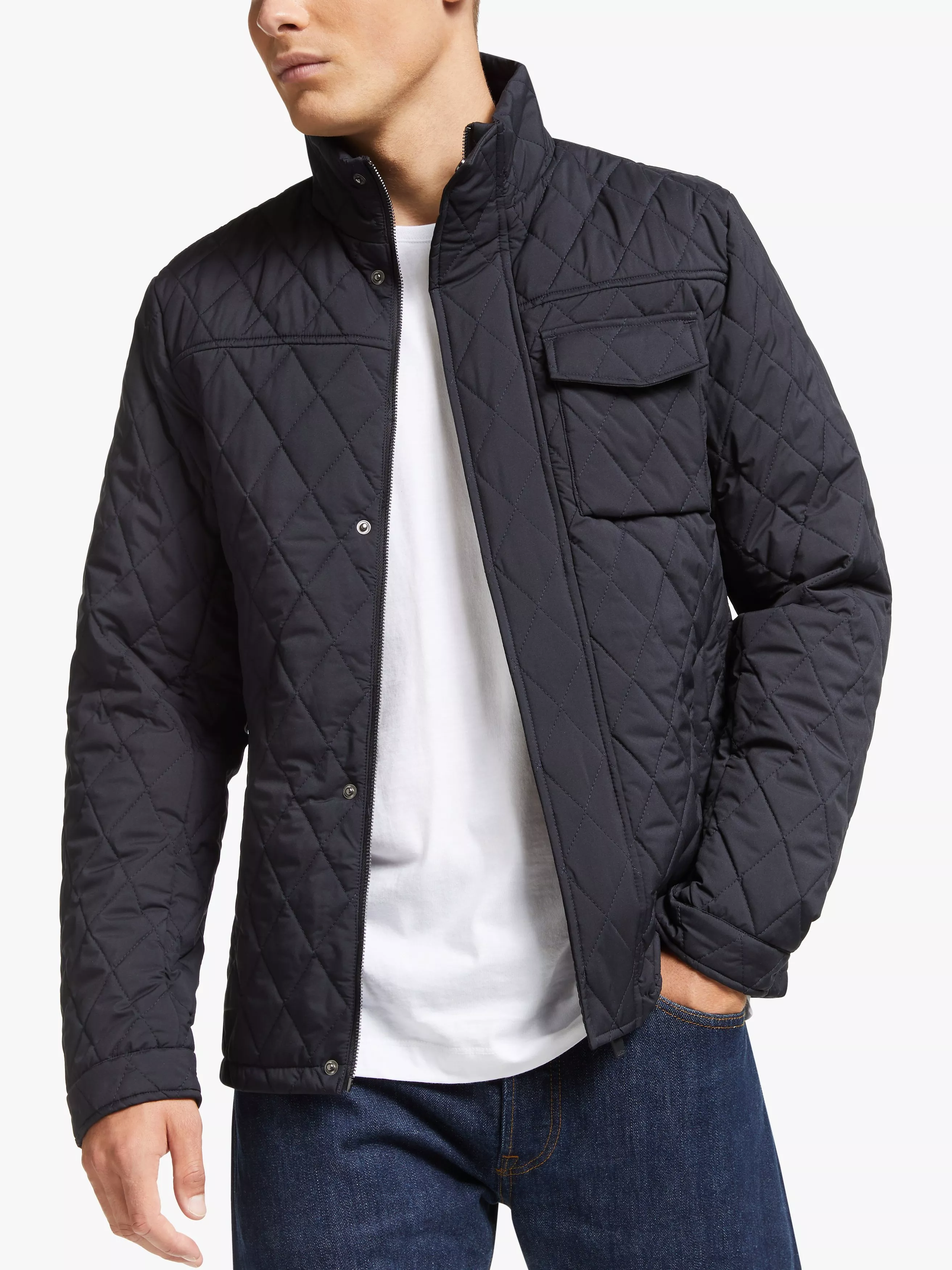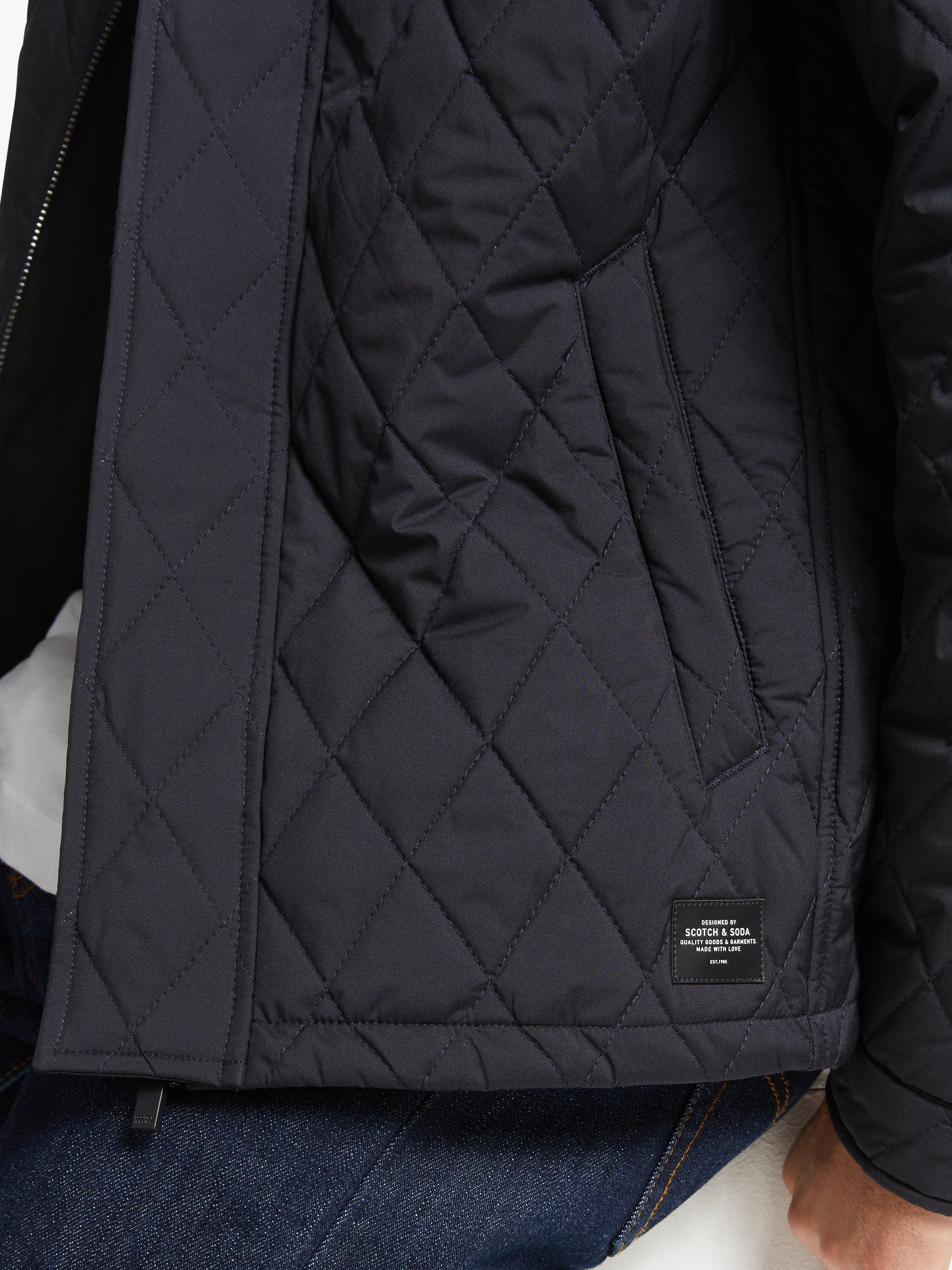 This casual jacket for men is designed with a folklore-floral inspired lining and a classic quilted field jacket look. The high collar adds a touch of outdoor sophistication.