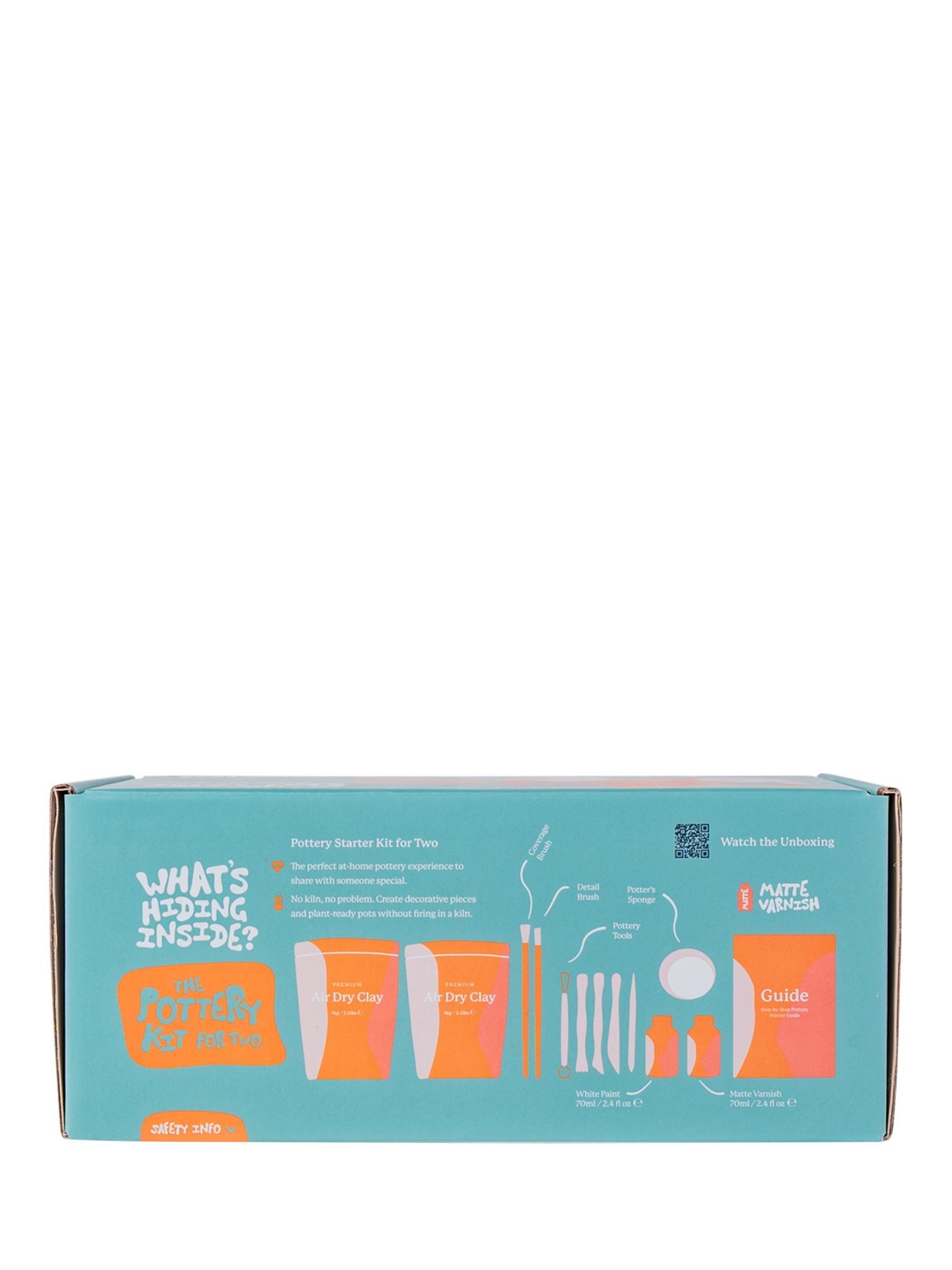 Every kit contains 2kg of clay, which is more than enough for two people. You can create 4 or more pinch pots or 2 larger plant pots with plenty left over for the finishing touches.