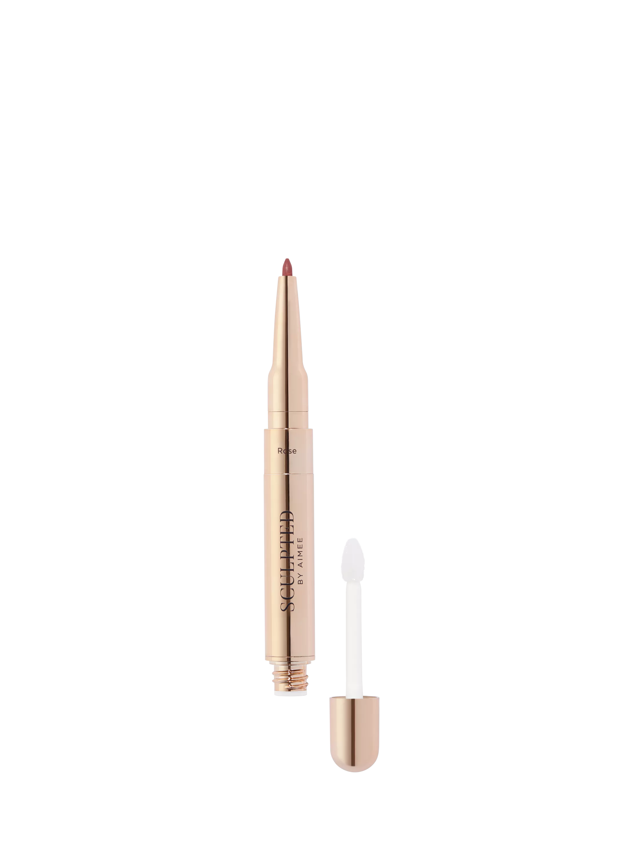 Starting at the Cupid’s bow, trace the border of your lips with our creamy liner and set it in place with the clear gloss. For a diffused finish, blend the liner with your fingers before applying the gloss.