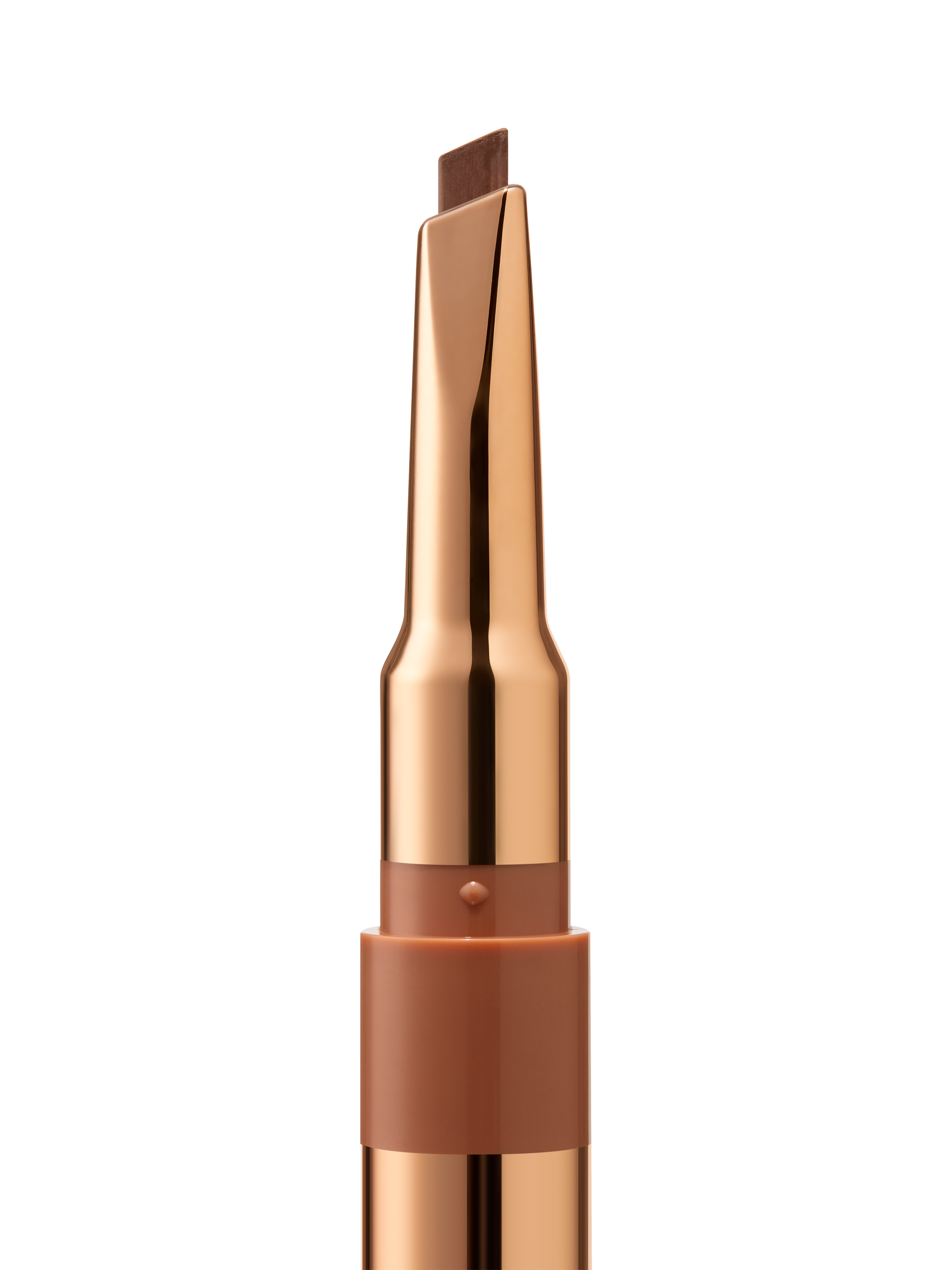 On one side, the angled brow pencil helps you to 'Shape' the perfect brow with a highly pigmented tip designed to create subtle hair-like strokes. On the other side, the gel helps you to 'Set' and style your brow hairs in place.