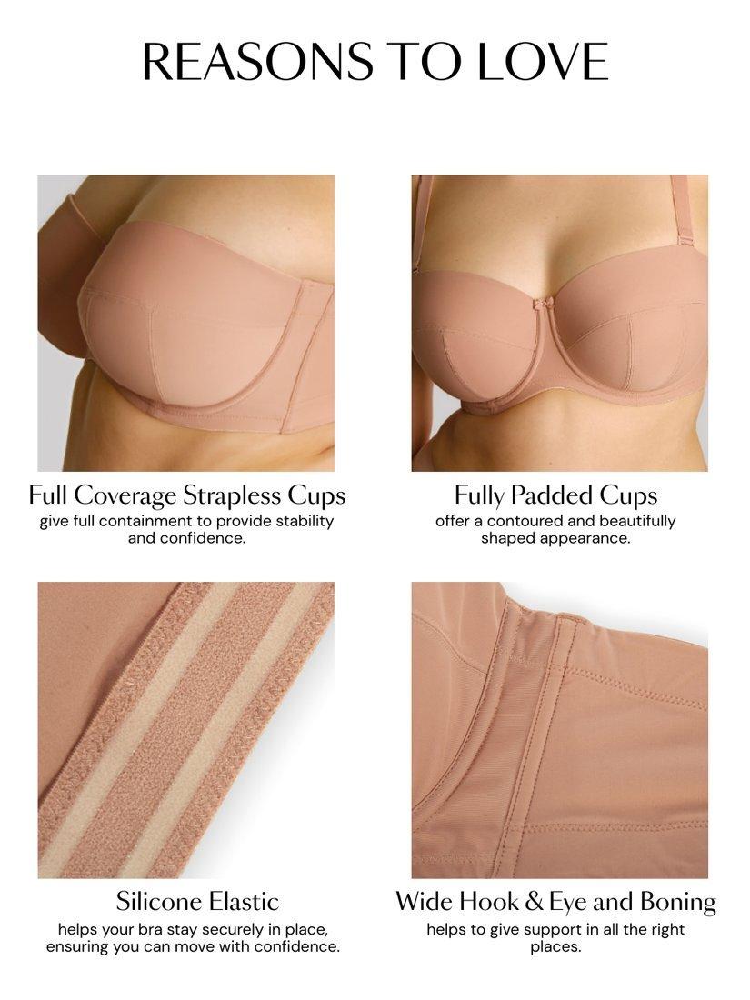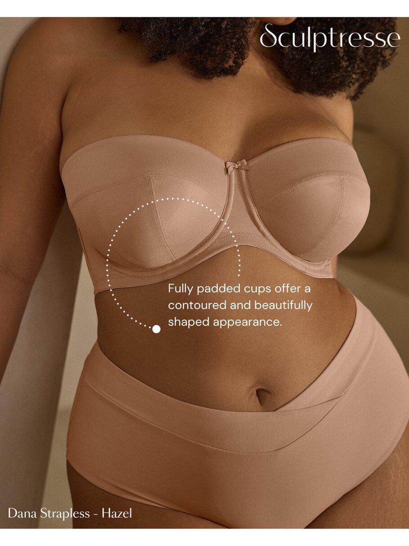The classic Sculptresse Strapless style from Panache uses a semi-sheer fabric with a padded cut and sewn inner cups for that ultimate stay-put feeling.