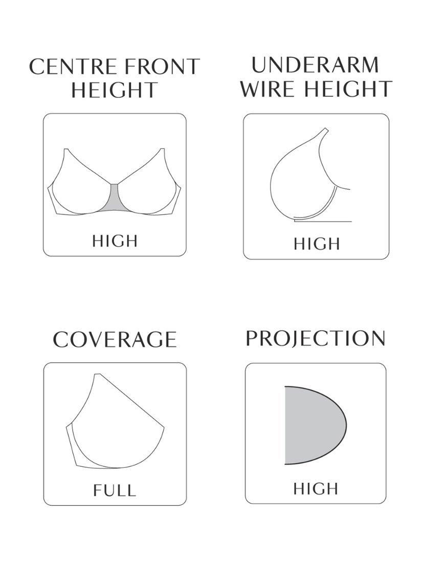 A 4-piece full cup with lined bottom cups, side sling and stretch lace top cups, Estel offers support and projection for an enhanced shape. The high back apex provides extra smoothing coverage with a supportive and comfortable finish.