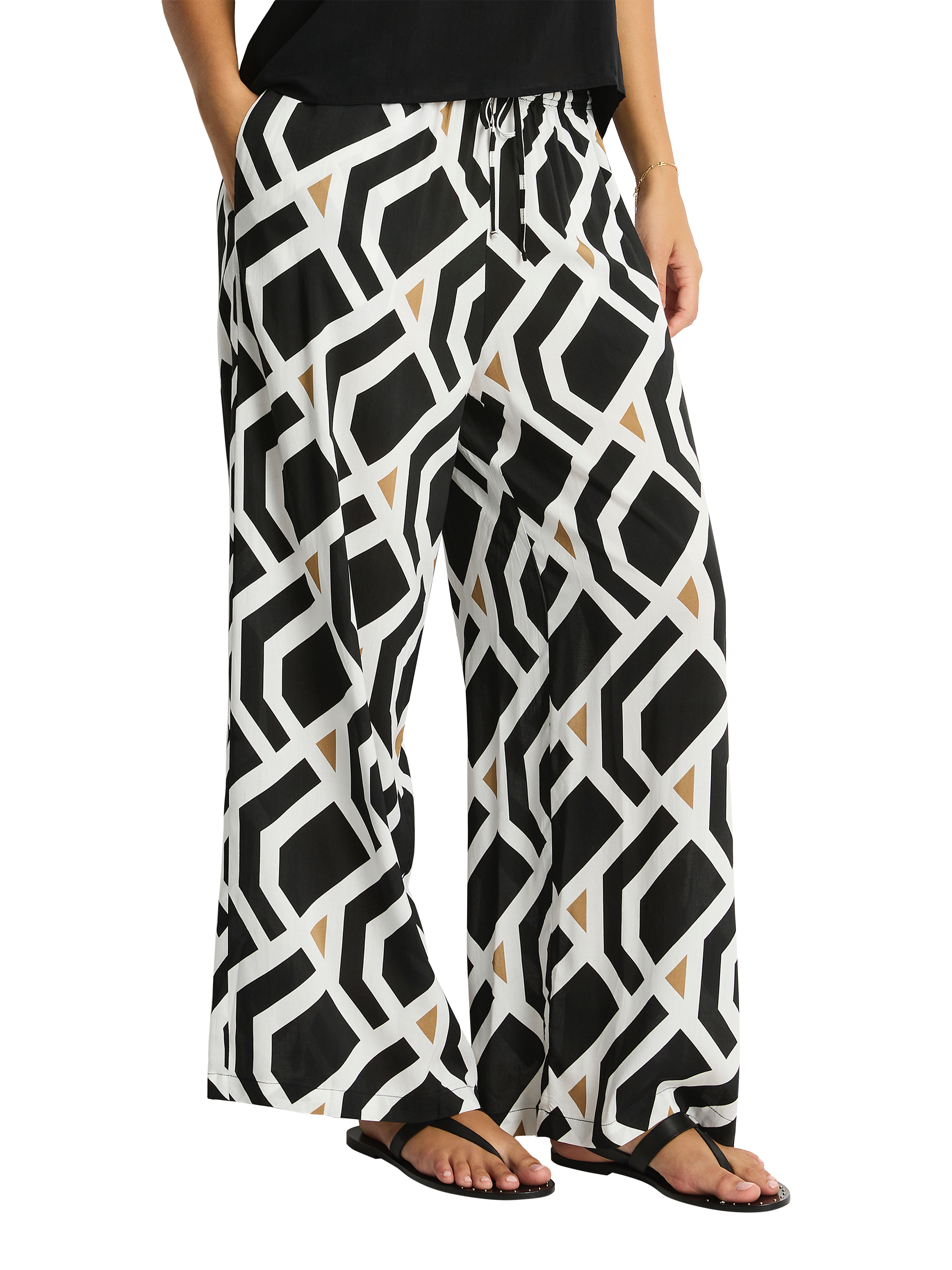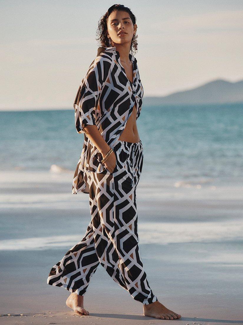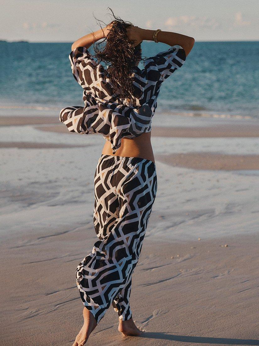Sophisticated geometric designs in crisp black and white are subtly highlighted with torches of sunbaked tobacco in Sea Level's Costa collection. Styled with luxurious gold hardware, each piece perfectly complements the warm tones of this striking monochrome swimwear collection.