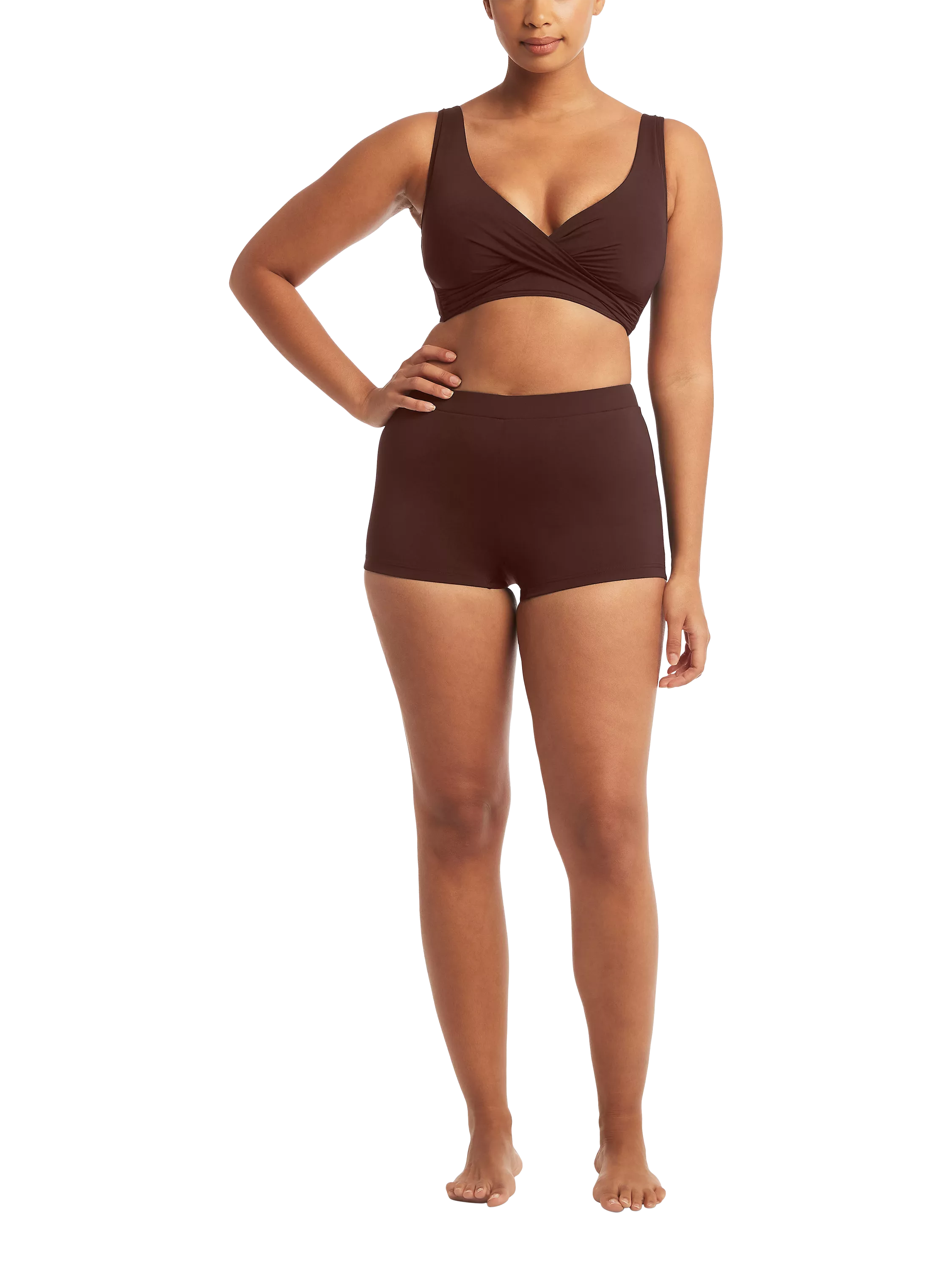 The Essentials Edit features Sea Level's foundation shapes in new colours. These high-waisted, full coverage bikini bottoms are made with powermesh lining for front and back support.