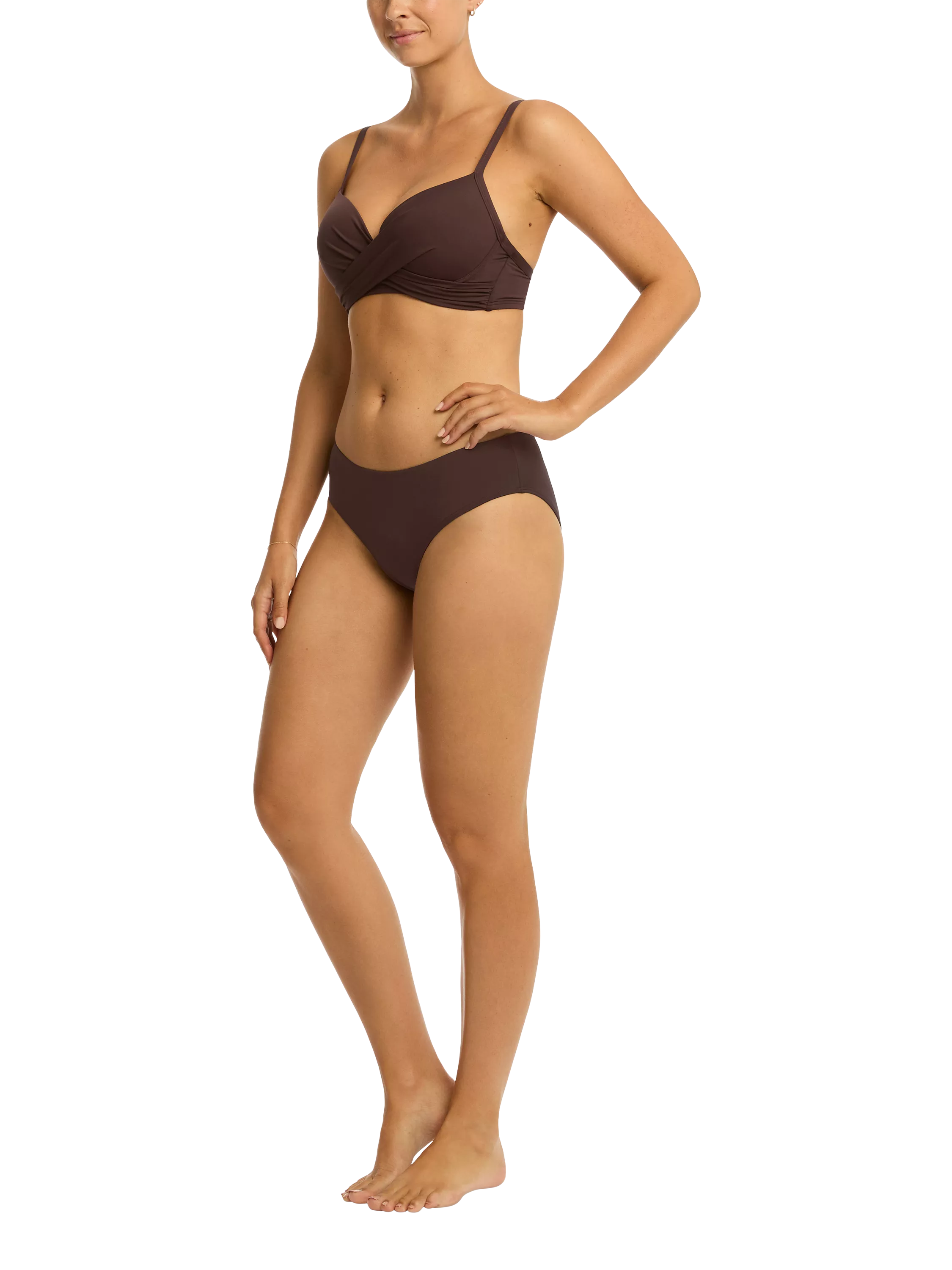 The Essentials Edit features Sea Level's foundation shapes in new colours. These mid-rise bikini bottoms provide moderate bottom coverage and are made with powermesh lining for front and back support.
