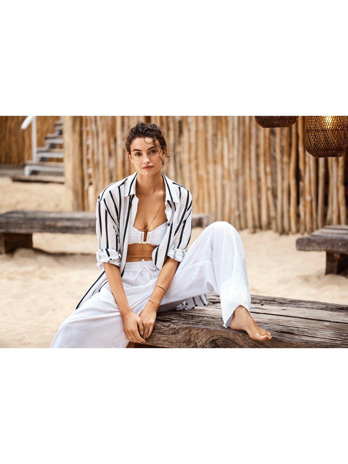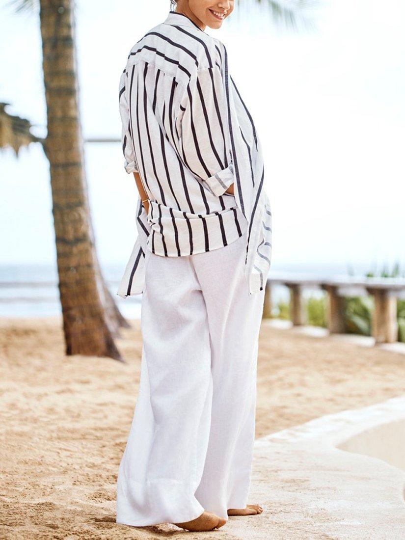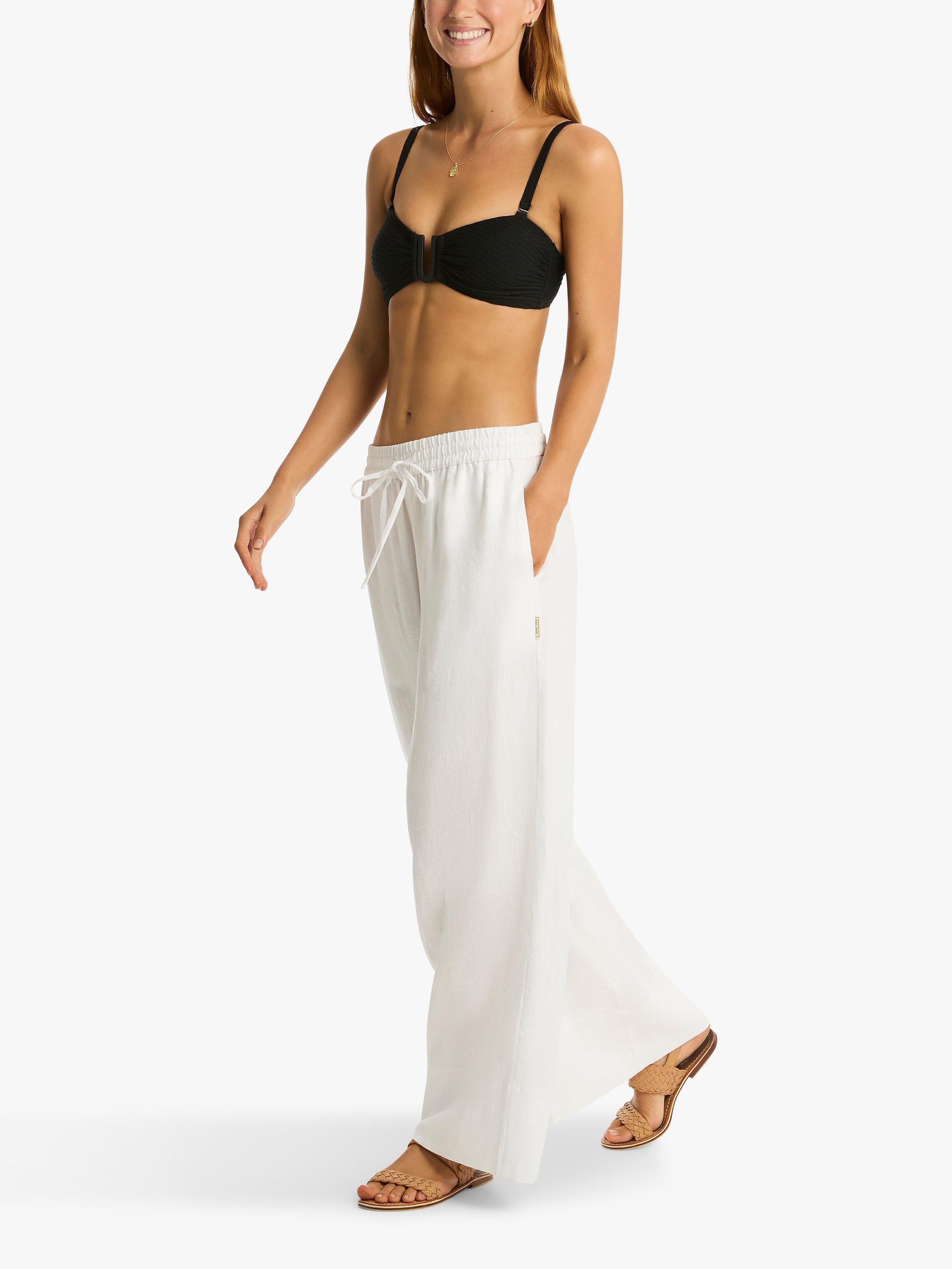 This lounge wear is thoroughly chic with its slouched shape and soft silhoutte. These linen trousers are designed with a comfy elasticated waist with a pull cord tie.