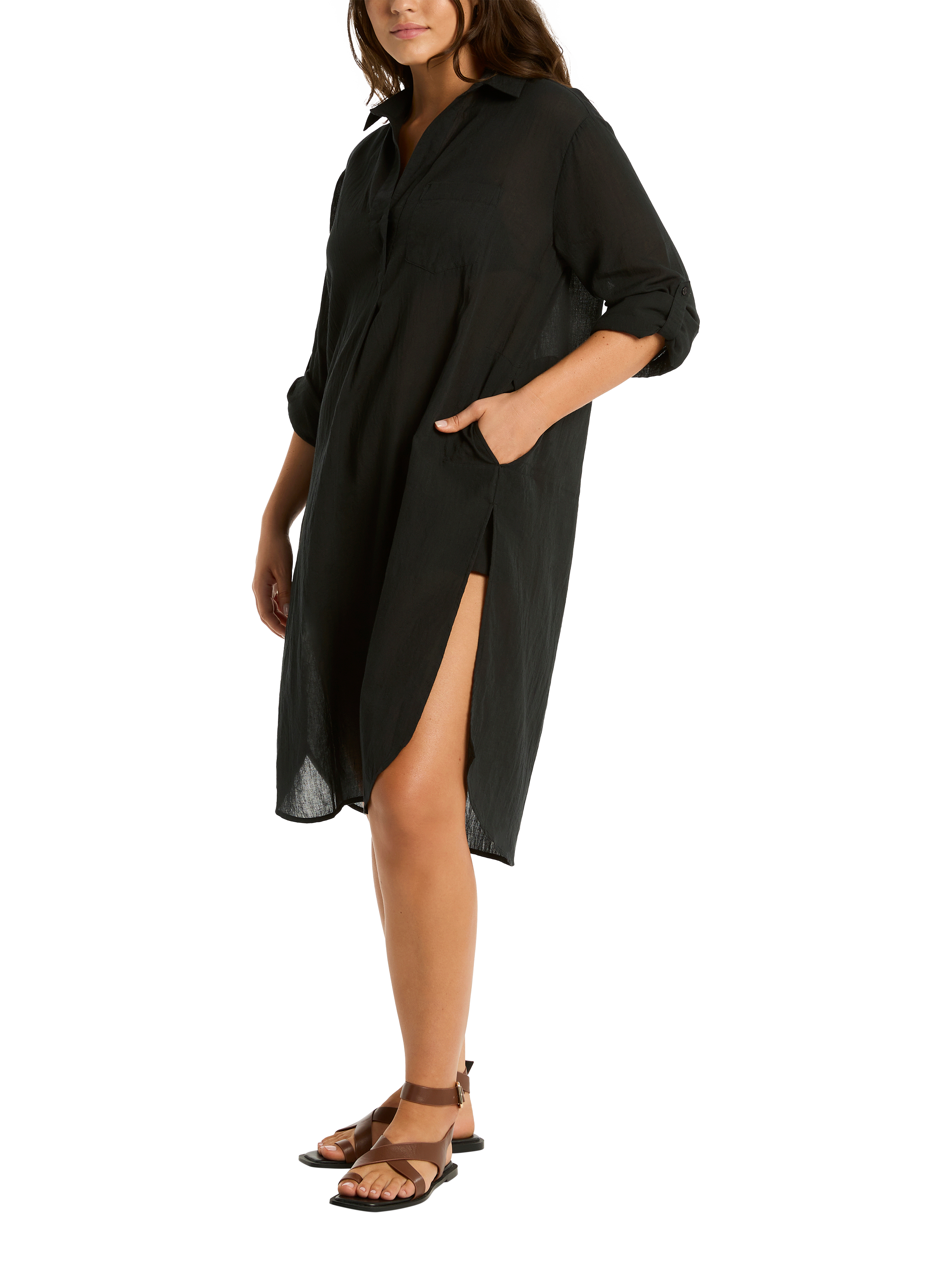 Sea LevelLong Beach Cover Up, Black