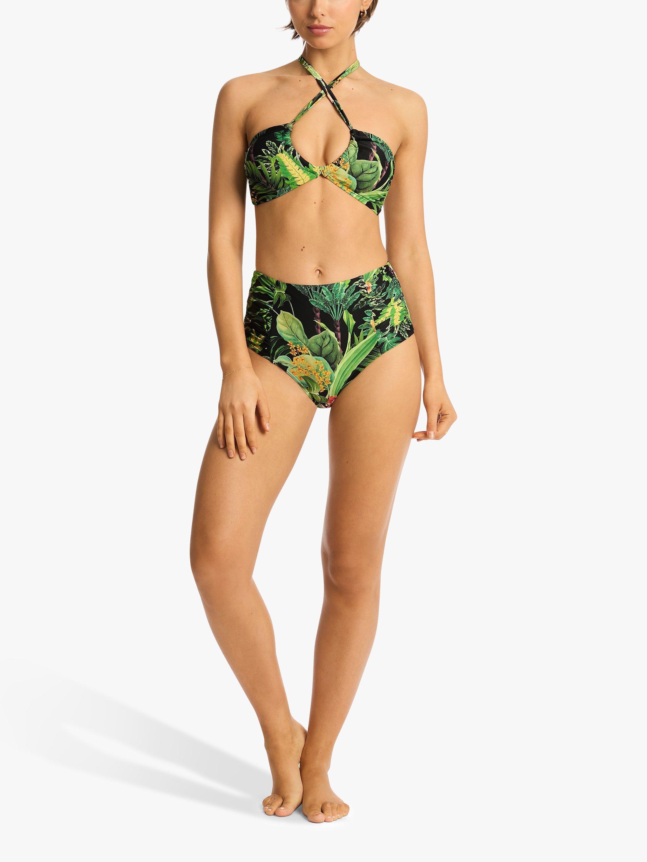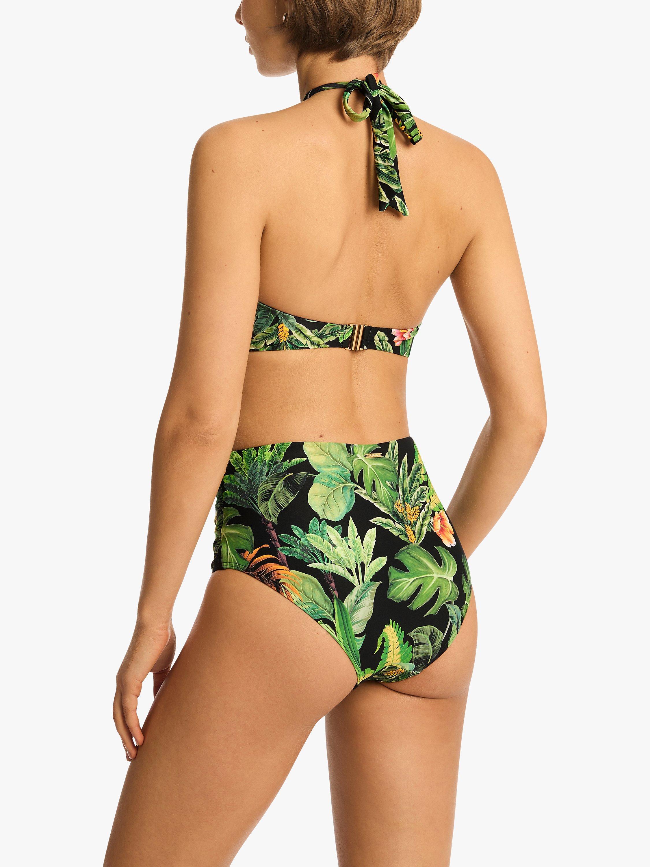 Made in a lush botanical print fabric. These Lotus bikini bottoms are cut in a flattering high waisted design.