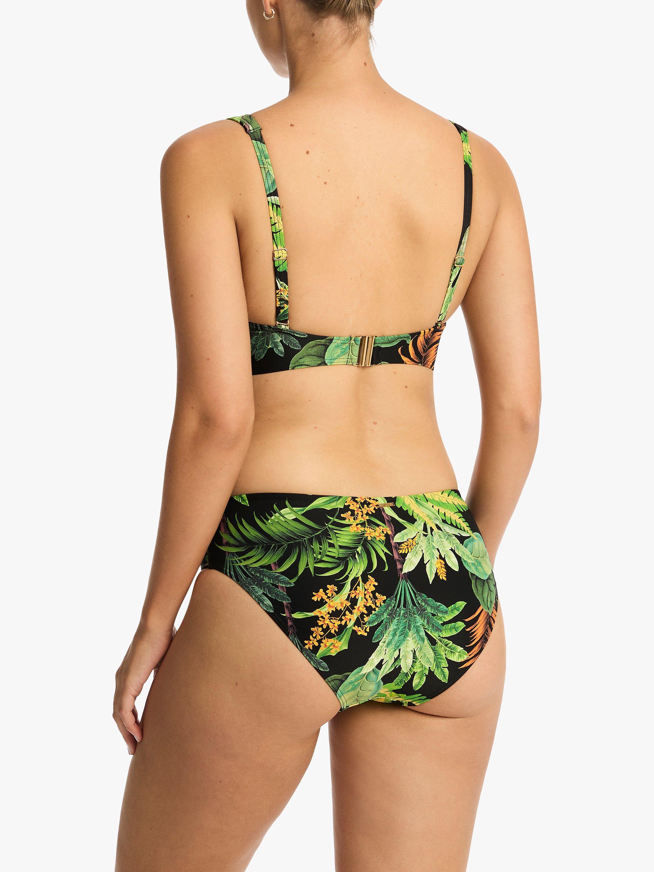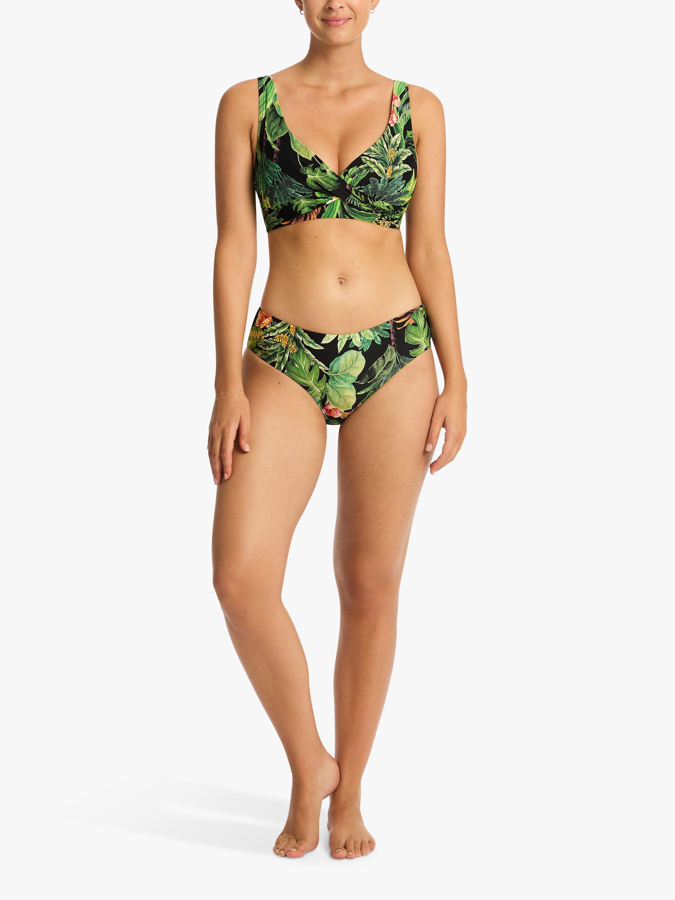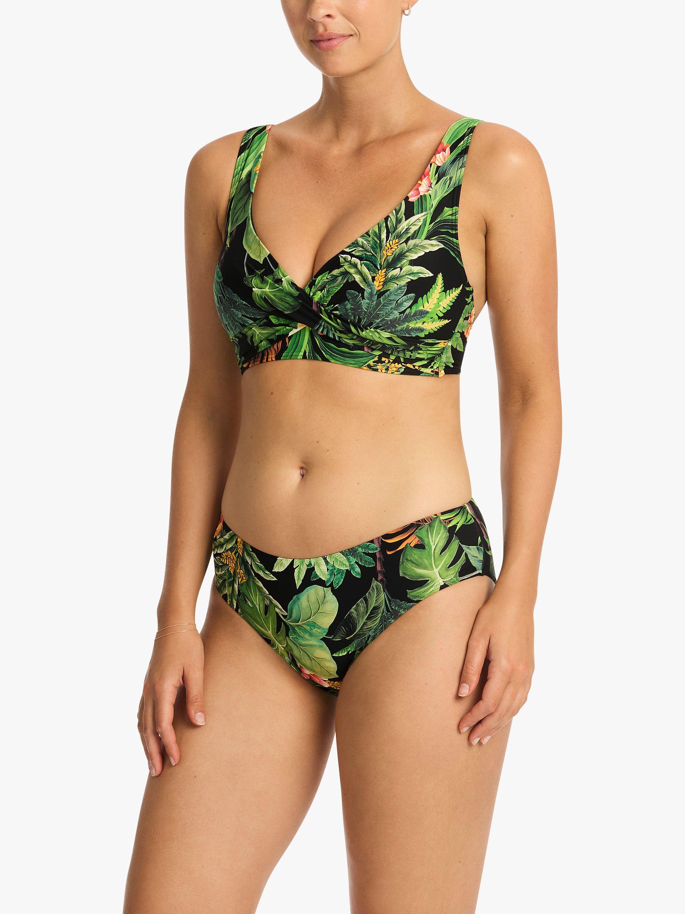 Made in a lush botanical print fabric, this cross front bikini top is padded and non wired.