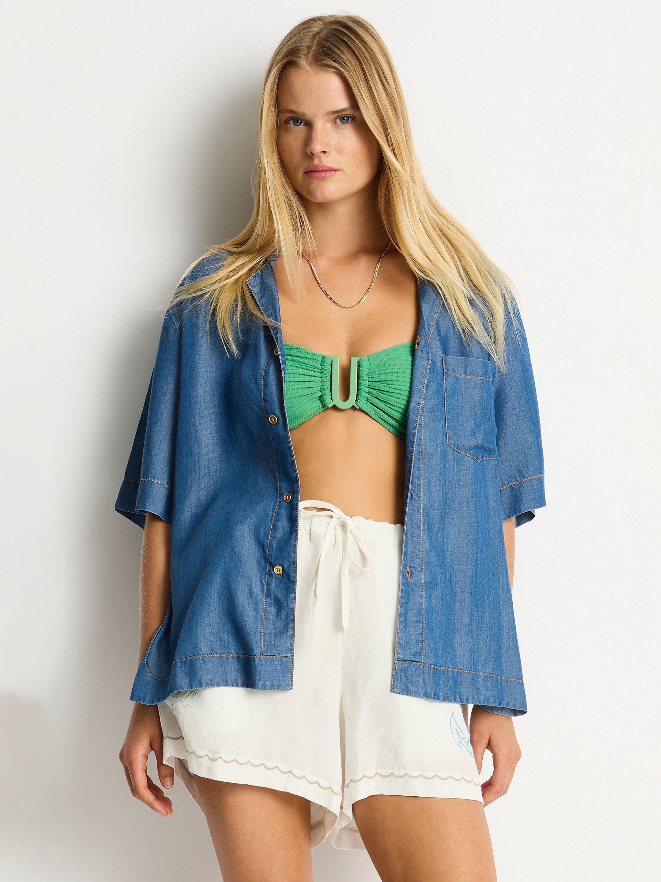 Crafted from a viscose-linen blend, these boxer shorts focus on quality and a soft feel. They feature an elasticated waist with a drawstring cord and functional side pockets for straightforward utility, and are finished with refined embroidery detail.