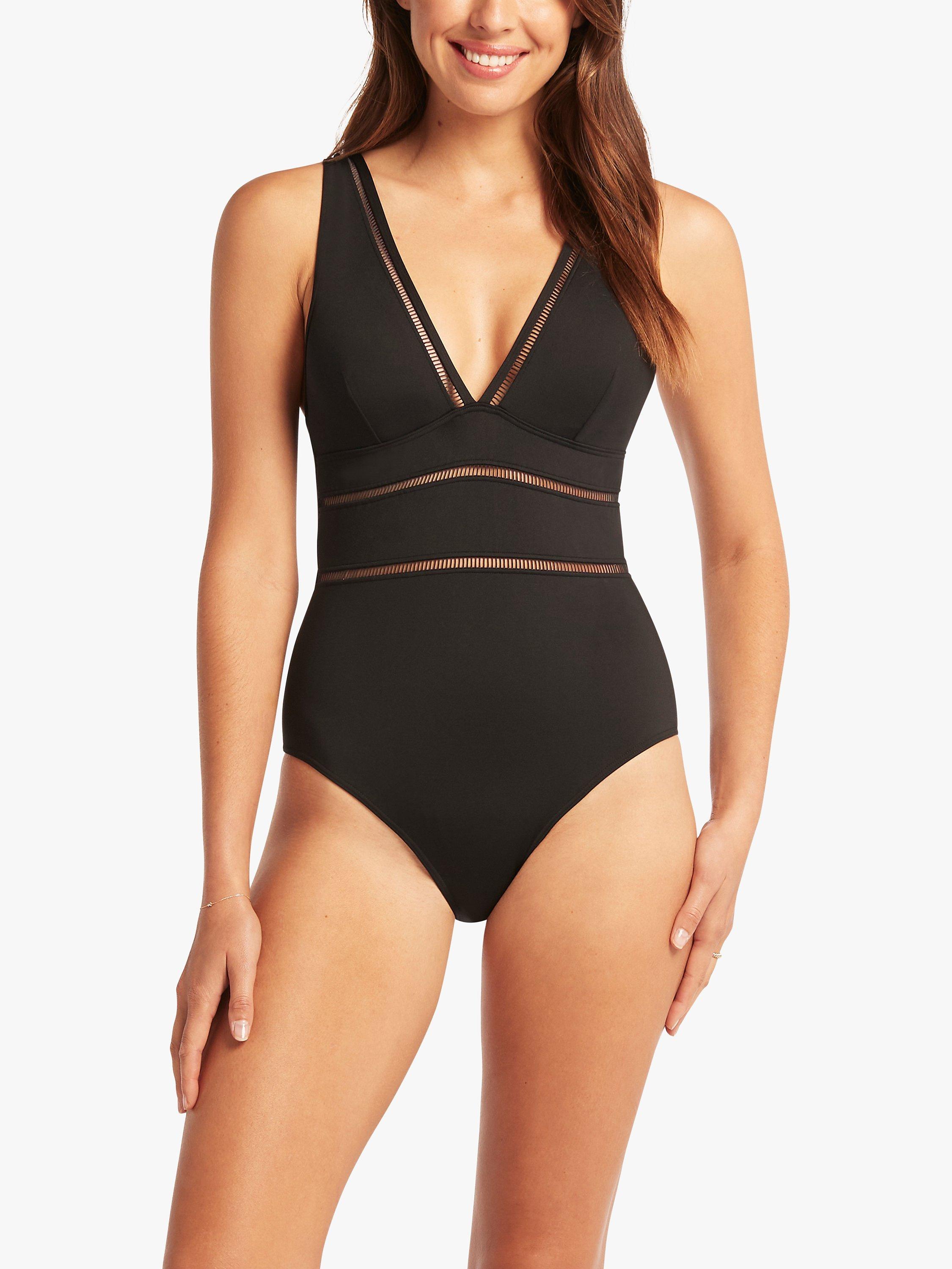 A light control, waist and tummy shaping swimsuit with a flattering medium leg made in a luxury, lightweight recycled fabric.