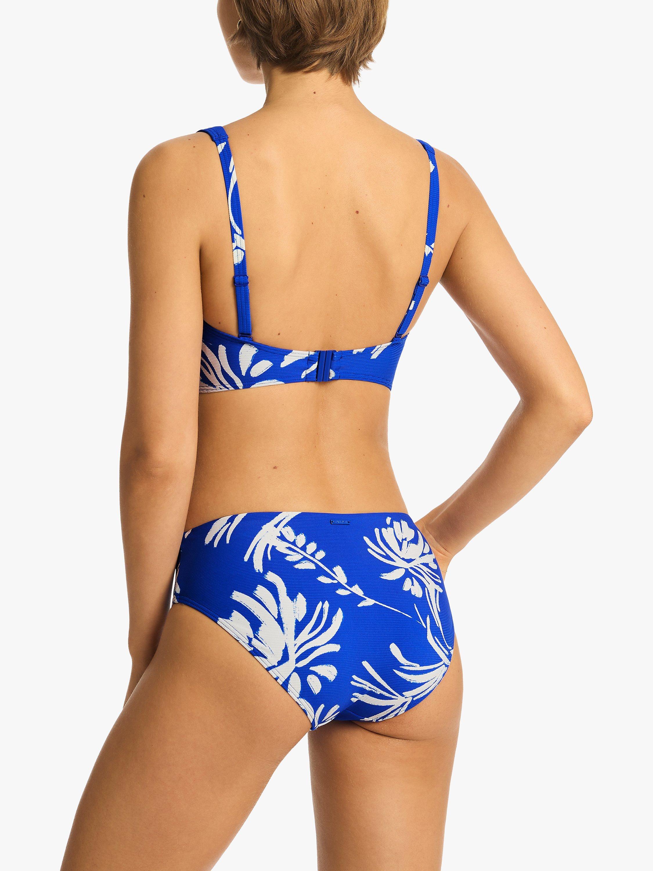 Made in a nautical themed fabric, this cross front bikini top is padded and non wired.
