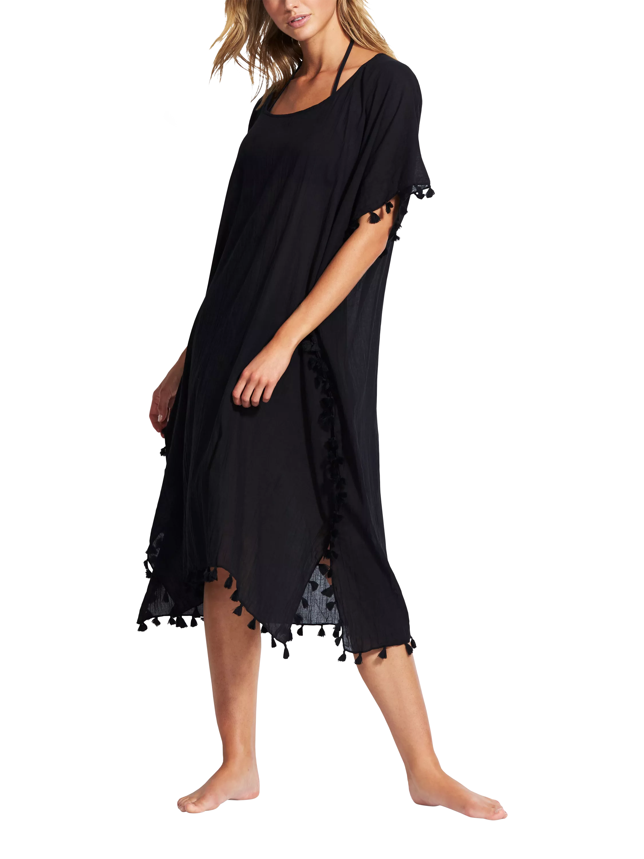 Soft to the touch with tassel trim detail, Seafolly's Amnesia kaftan is designed for a loose, relaxed fit. This version of Amnesia is in a longer, midi dress style.
