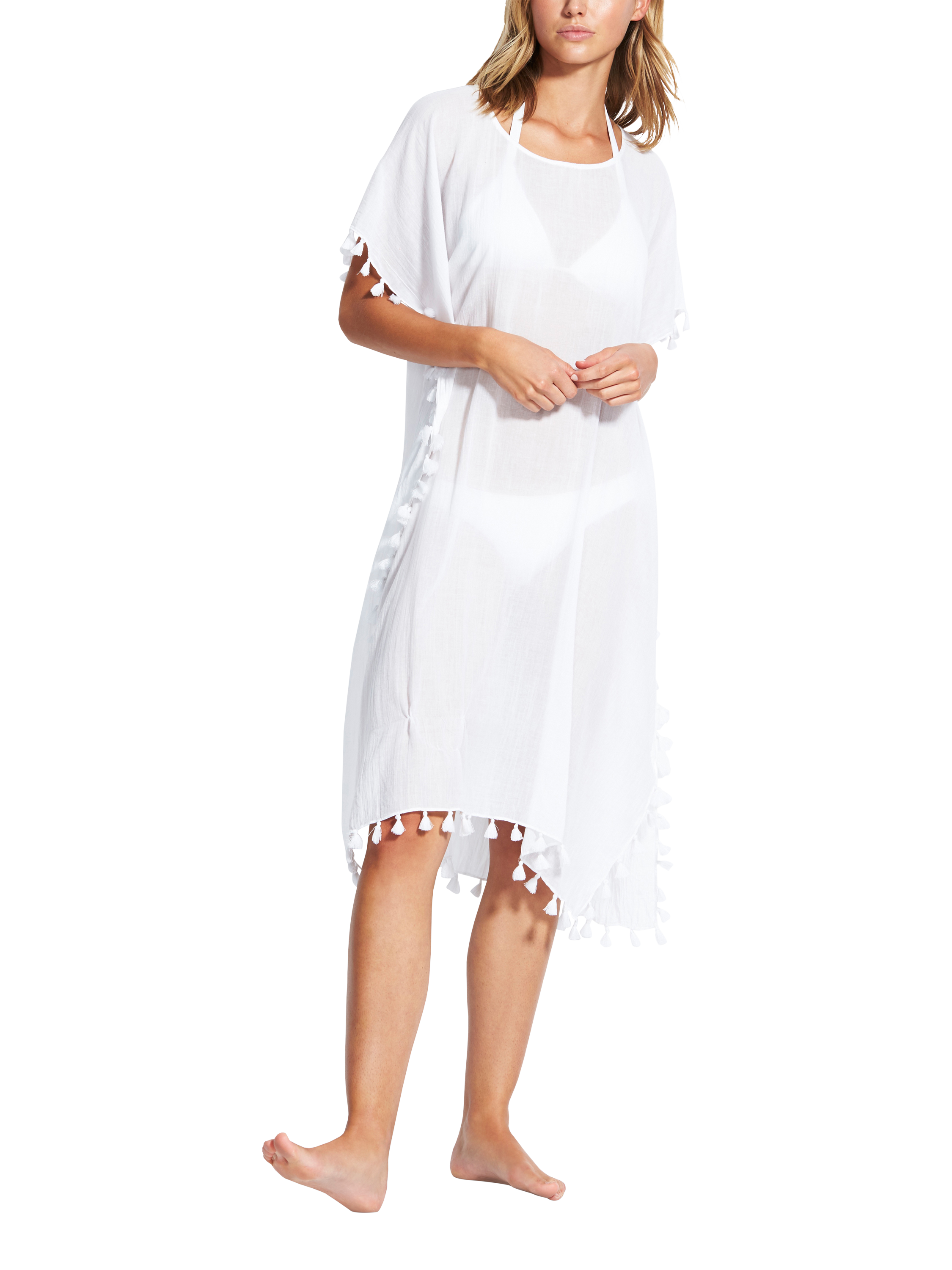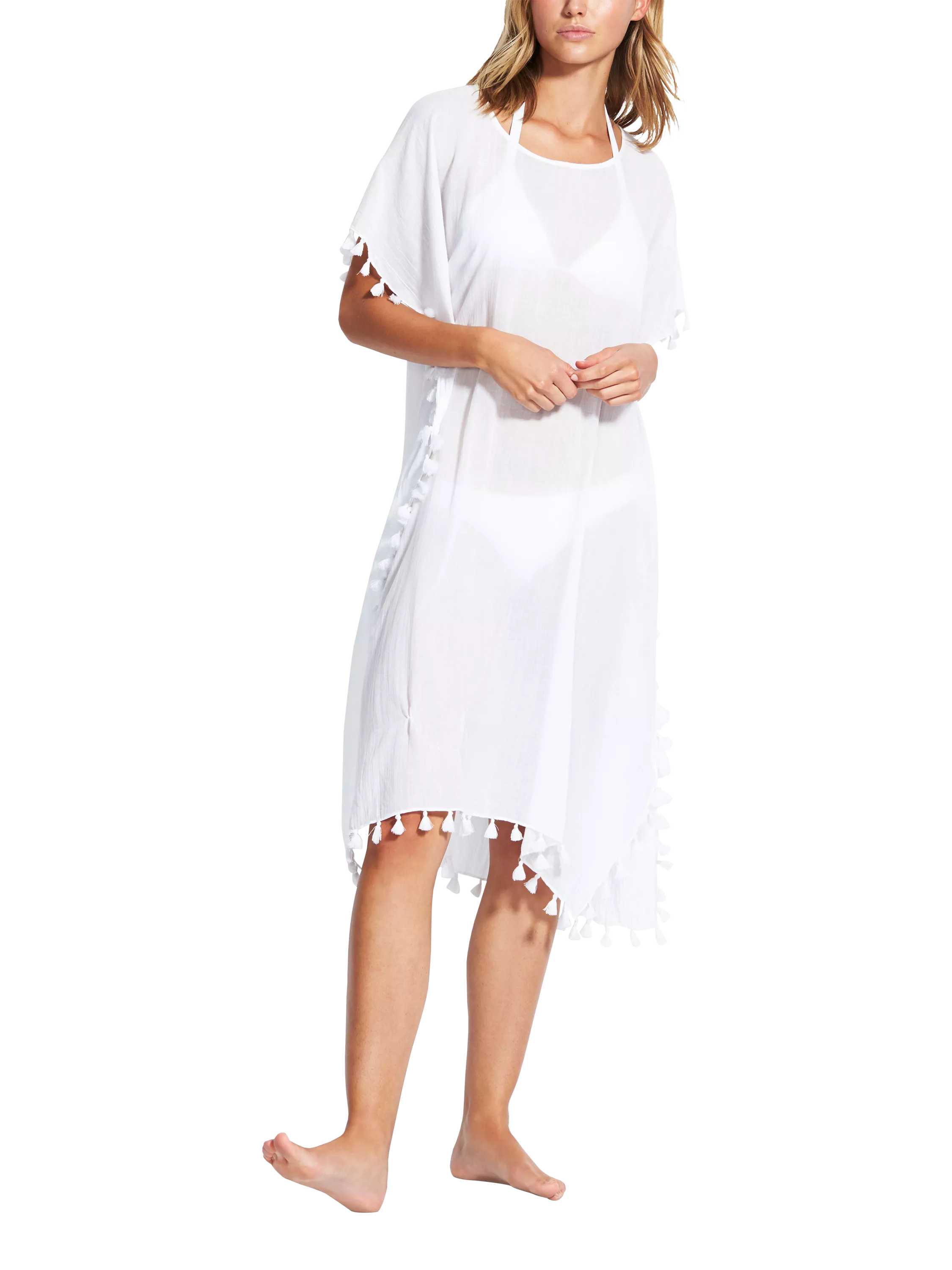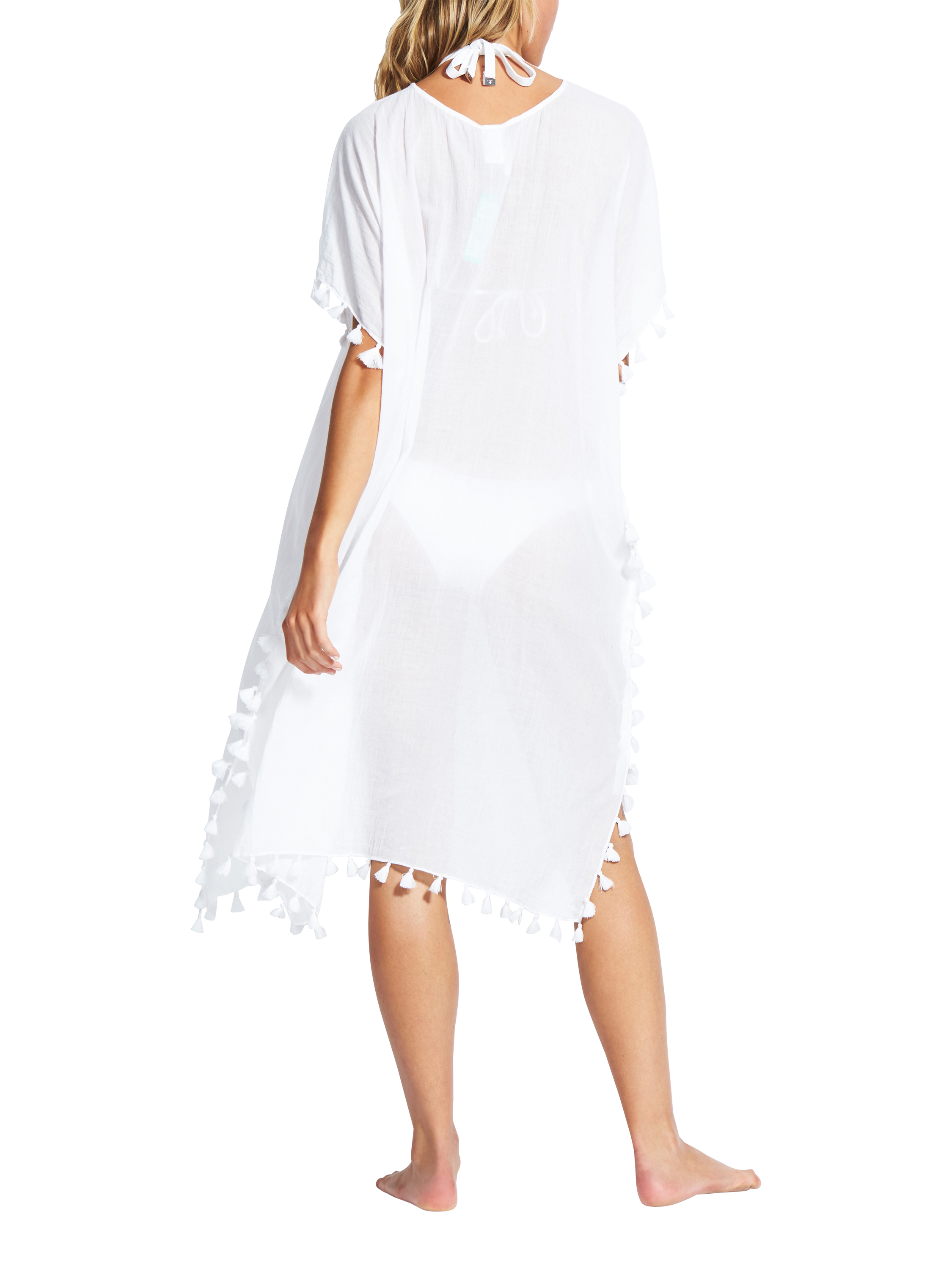 Soft to the touch with tassel trim detail, Seafolly's Amnesia kaftan is designed for a loose, relaxed fit. This version of Amnesia is in a longer, midi dress style.