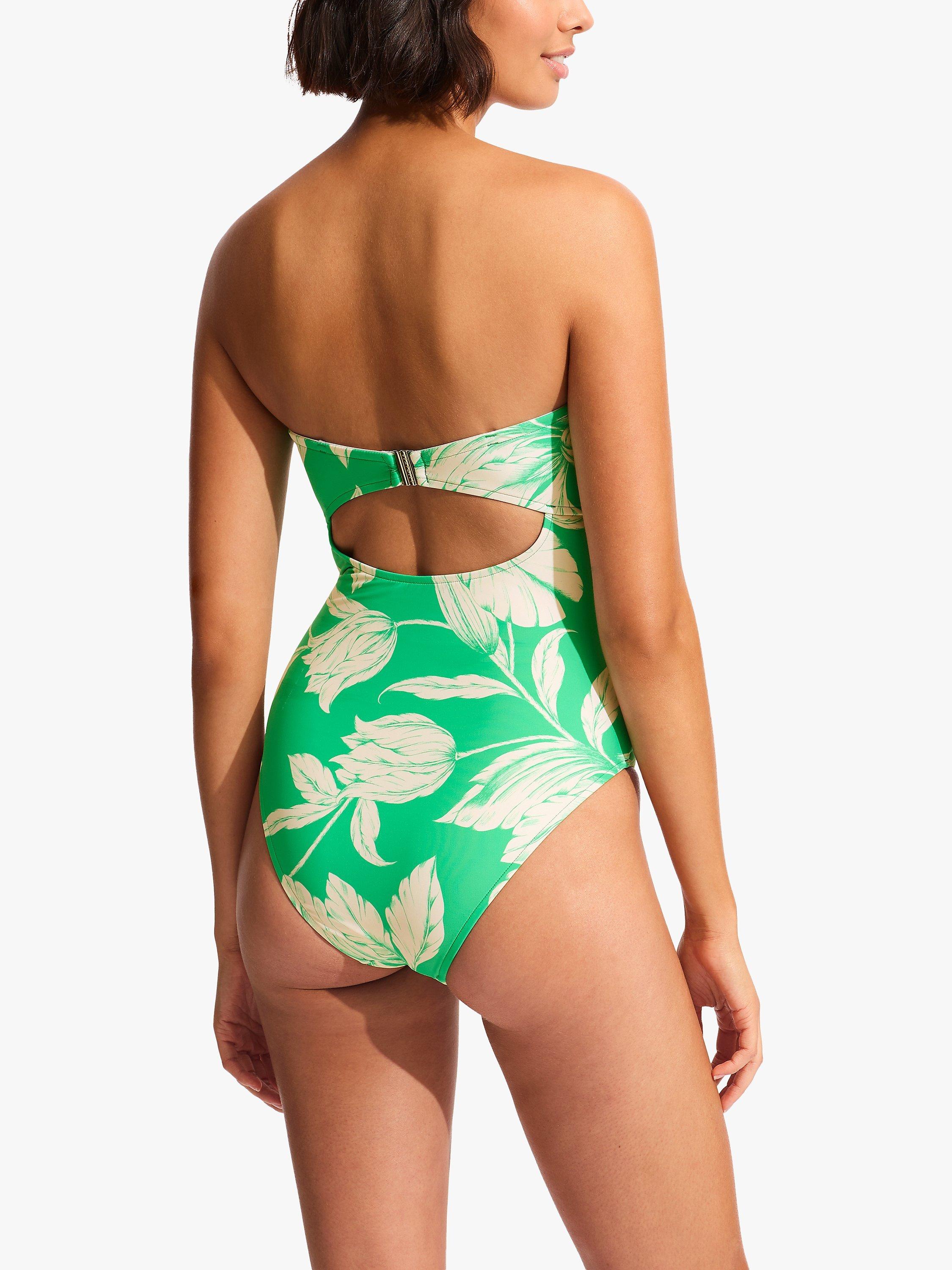 Show off your shoulders in this Fleur de Bloom bandeau swimsuit from Seafolly. As well as the strap-free neckline it has a twist tie front, creating more shape around the bust, with a small cut-out sitting below the knot.