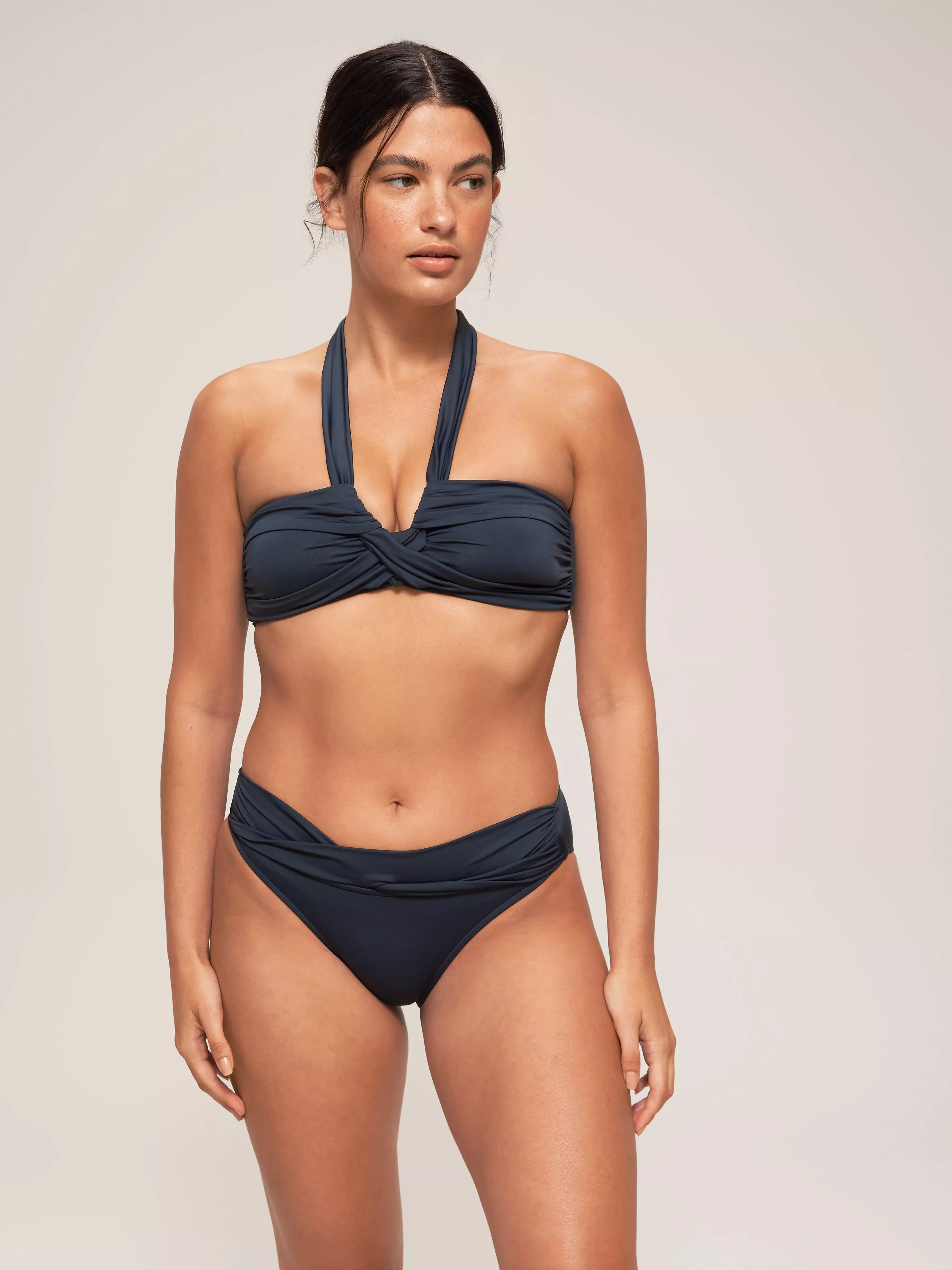 In a classic hipster shape and in a versatile, plain design, these bikini bottoms feature an unusual twisted band adding texture.