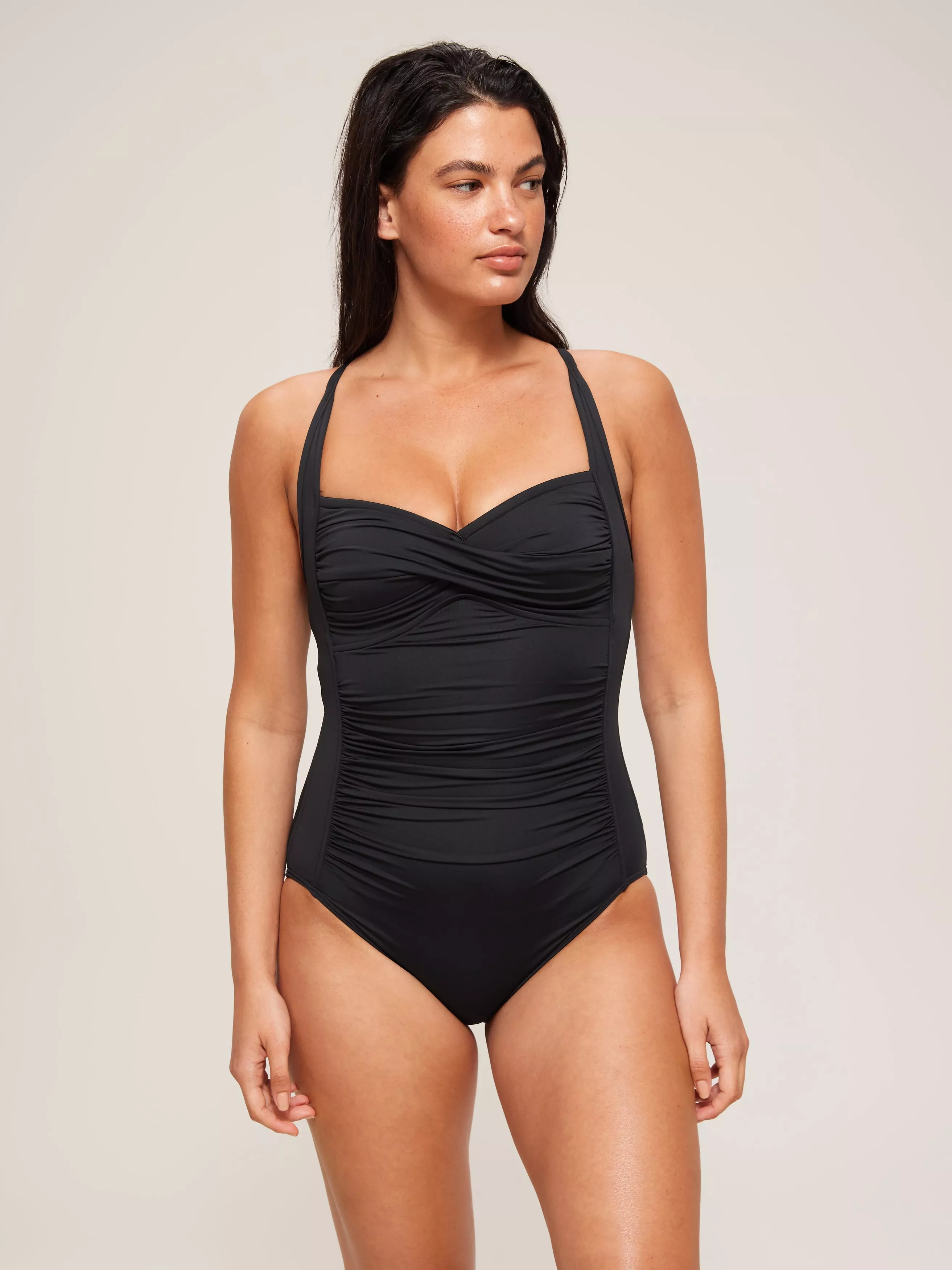 The Seafolly Collective Twist Halter One Piece is a sleek swimsuit with ruched panels to create a seamless shape fitting style. The adjustable straps and gripper tape offer extra support for all day wear.
