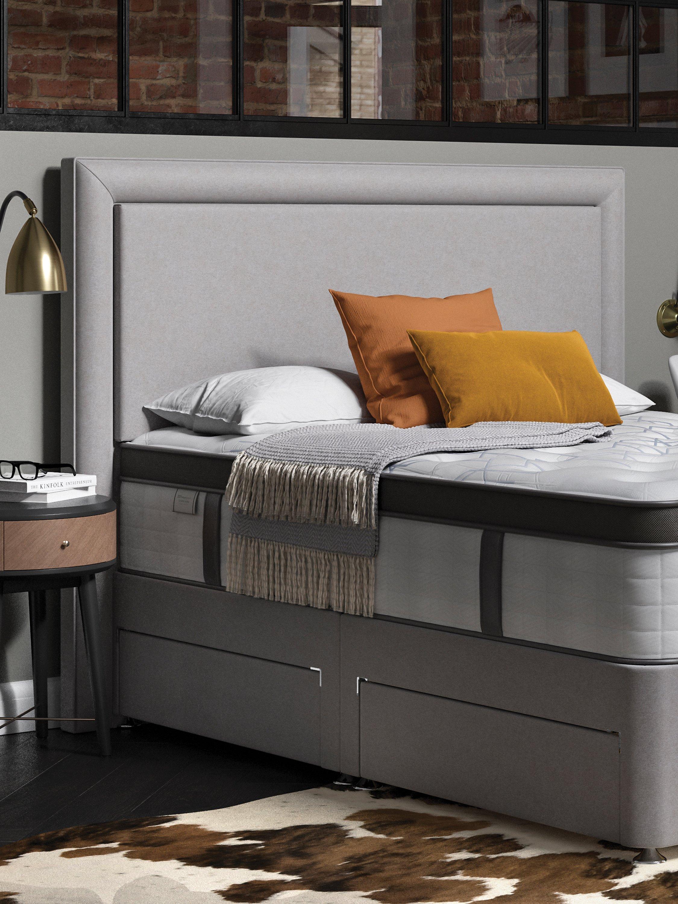 Stylish yet simple, the Beetham is designed to complement any bedroom décor. This full height headboard design from Sealy comes in a number of sizes and features deep padding to offer a premium look and feel. Offered in two fabrics, a cosy textured wool-blend fabric, available in Latte, Midnight and Silver Fox and a luxurious textured velvet fabric, available in Ocean, Dove and Armour. Hand crafted and upholstered in Britain.