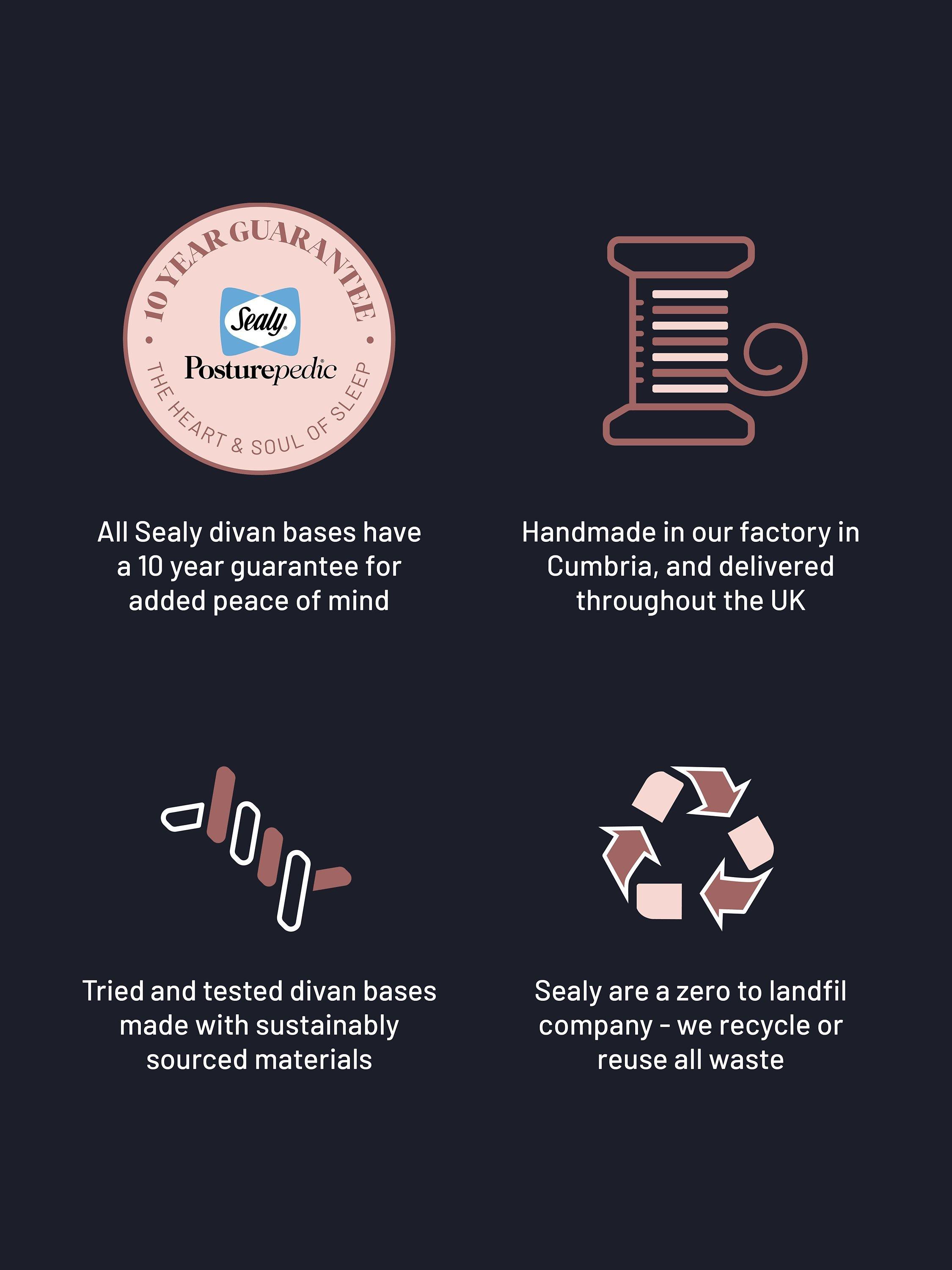 Compatible with all Sealy mattresses, the Exquisite divan base is built from responsibly sourced and FSC-approved timbers. Handcrafted in Britain, with a non-sprung, firmer platform top, it provides a stable and durable foundation for your mattress and it’s made with Sealy’s StayTight™ fabric which minimises movement to help your mattress stay securely in place. This divan base also has four drawers in total, with two on each side of the frame, so it's great if you need extra storage space.
