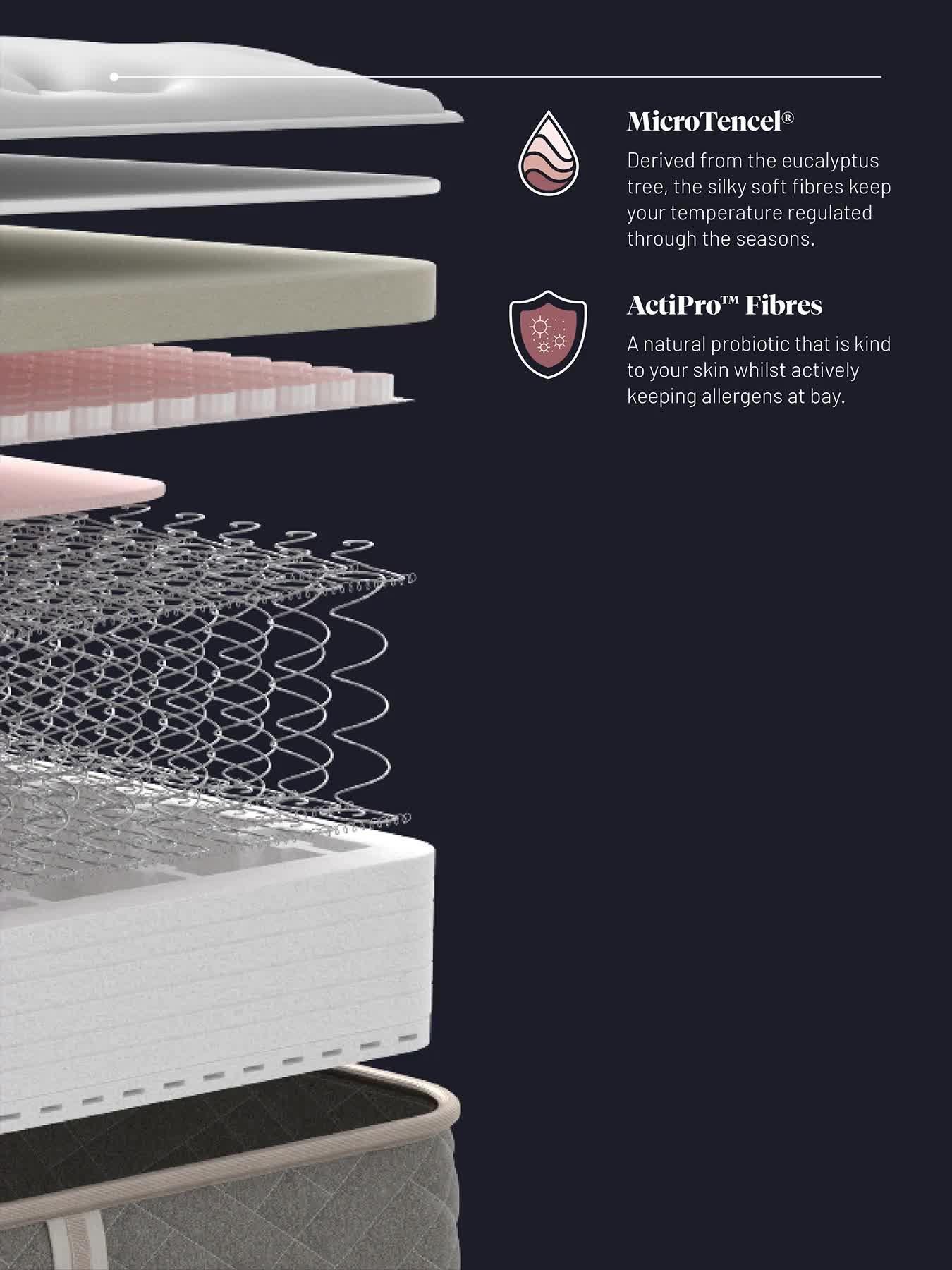 - The cover is woven with specialist fibres, including MicroTencel® for advanced moisture control to help keep your temperature controlled throughout the seasons.