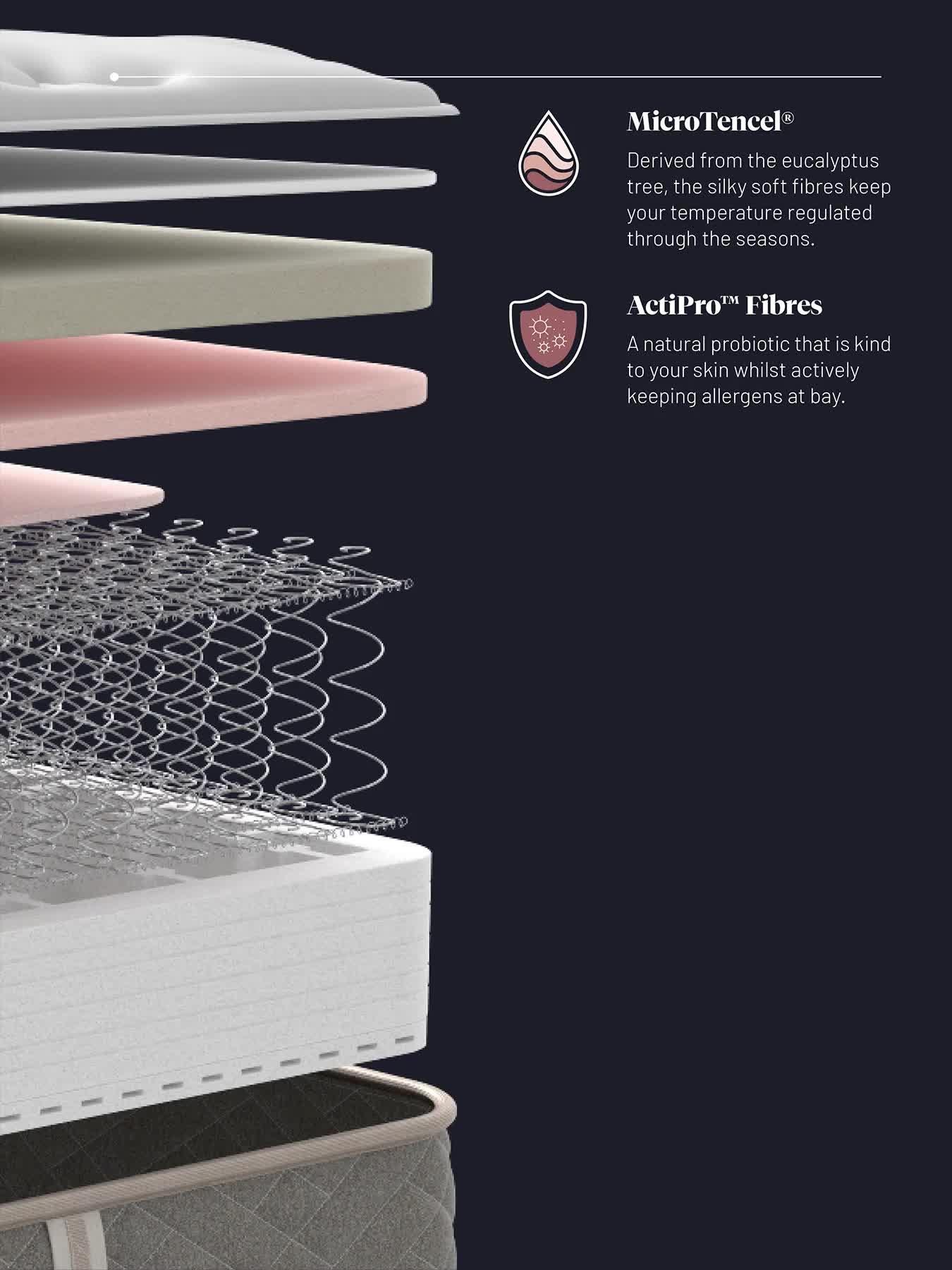 - The cover is woven with specialist fibres, including MicroTencel® for advanced moisture control to help keep your temperature controlled throughout the seasons.