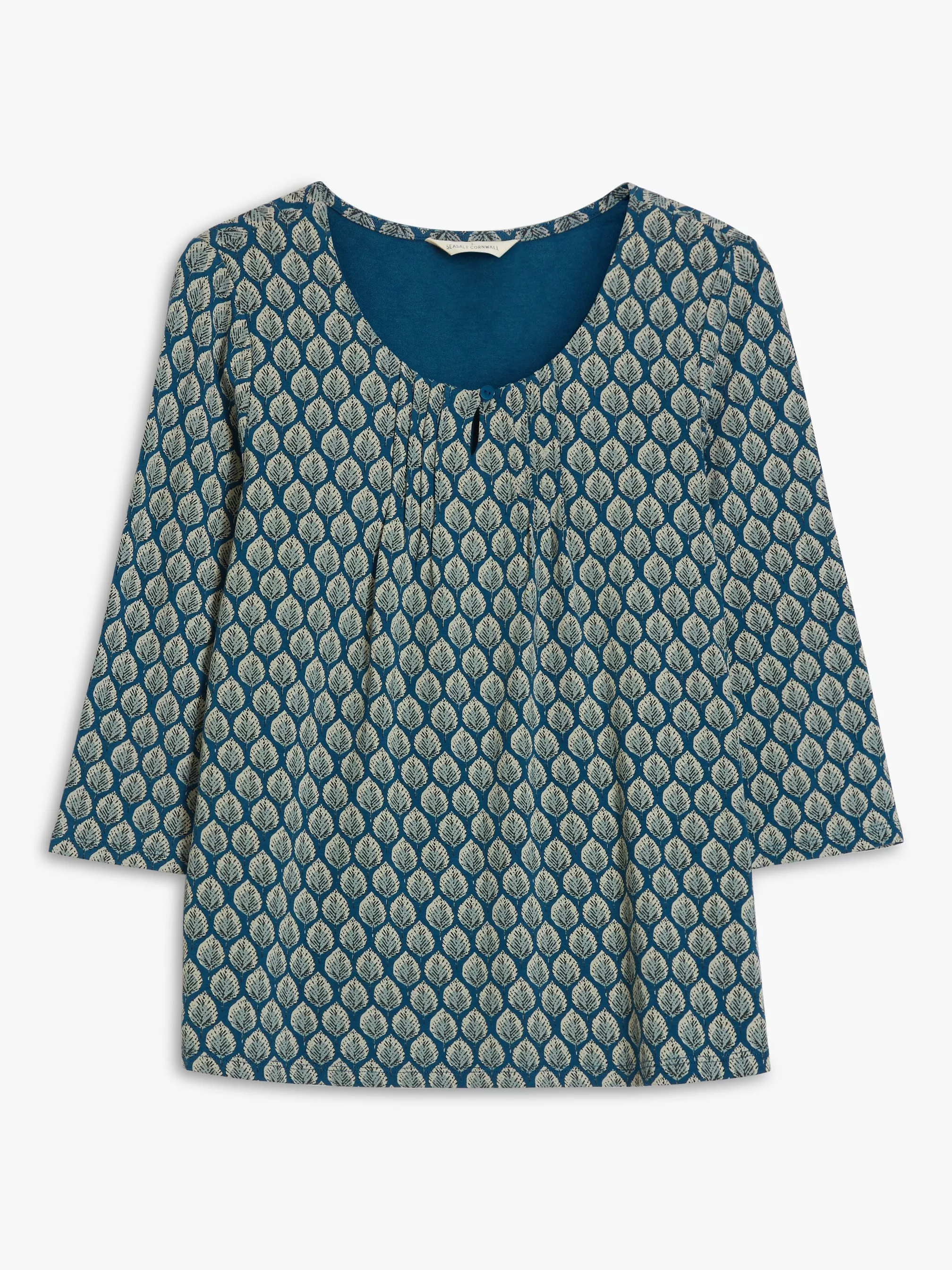Made from sustainably derived bamboo that drapes beautifully, this top from Seasalt has flattering three-quarter length sleeves and a scoop neck with pin tucks and a keyhole detail. With an all-over block leaf print that's bound to appeal, slip on with simple separate to complete.
