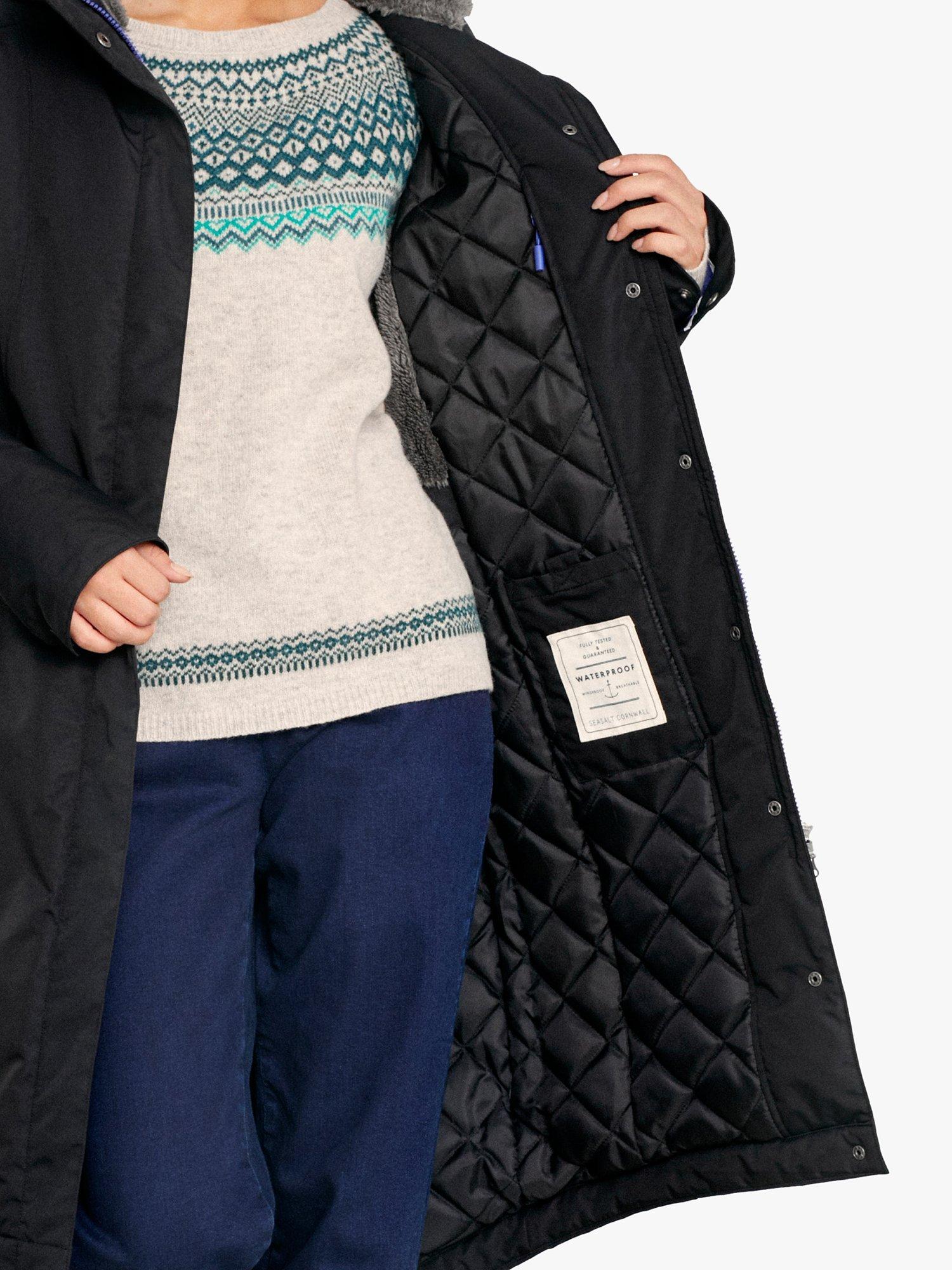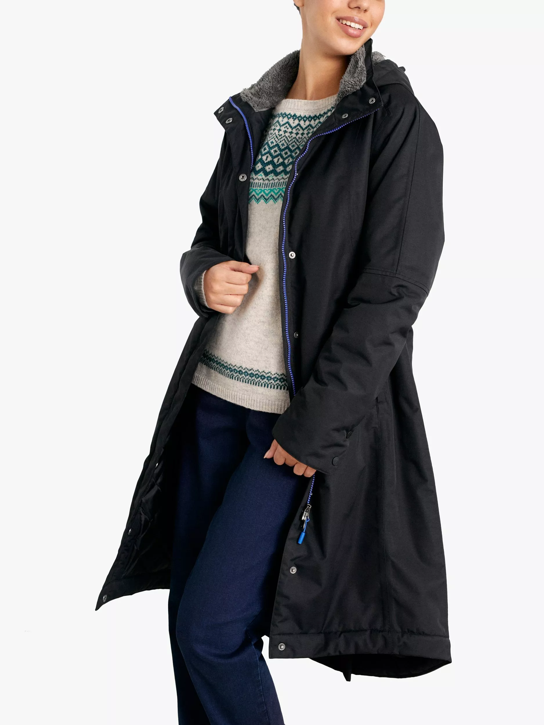 Part of Seasalt's RAIN® collection, the Janelle Coat is waterproof, windproof and breathable. Keeping you covered in a knee length style that is relaxed in fit so you can easily layer it over jumpers and sweatshirts, it offers a cosy finish with a fleece lining through the upper part of the coat and keeps out the rain with fully taped seams.