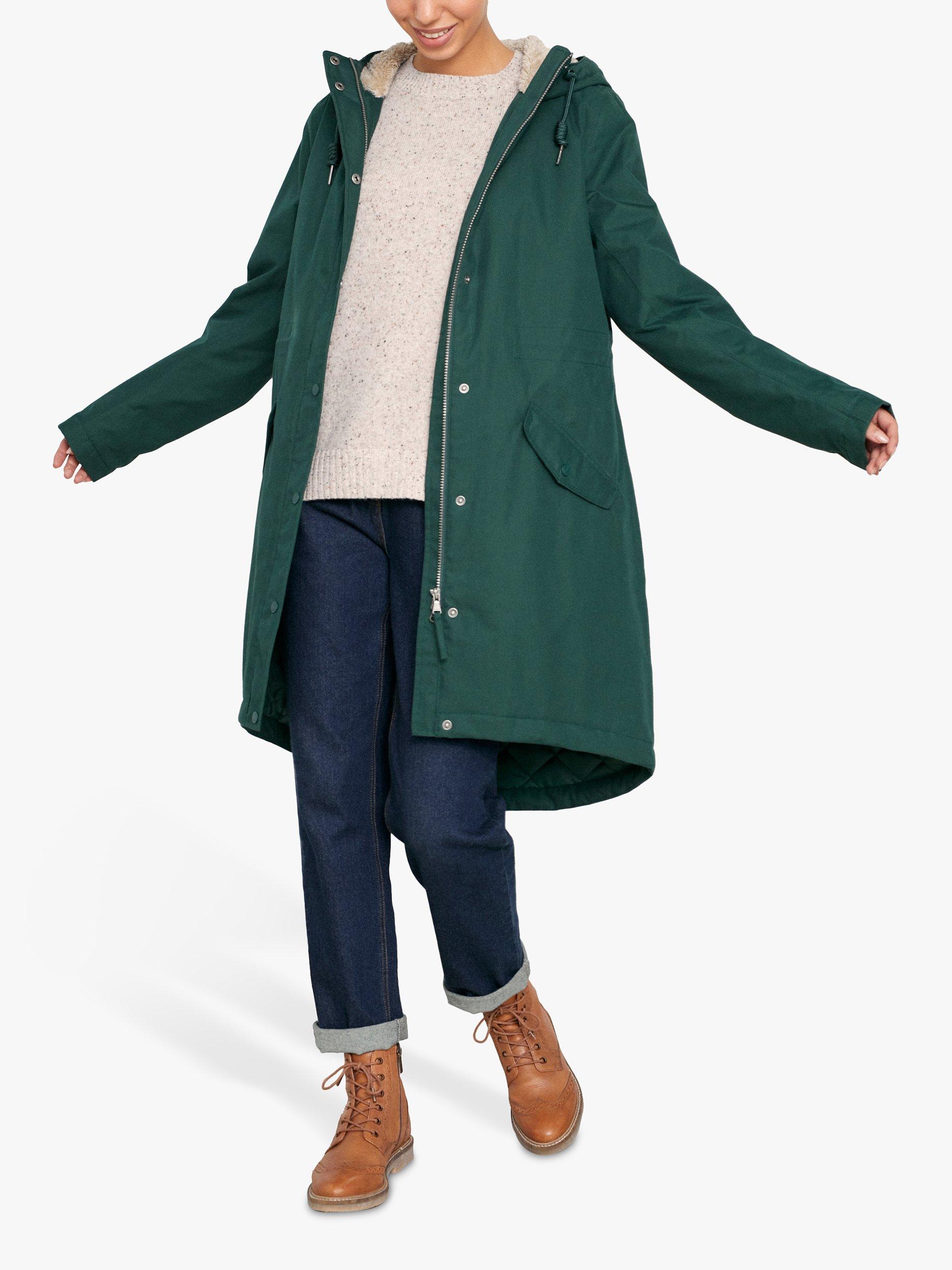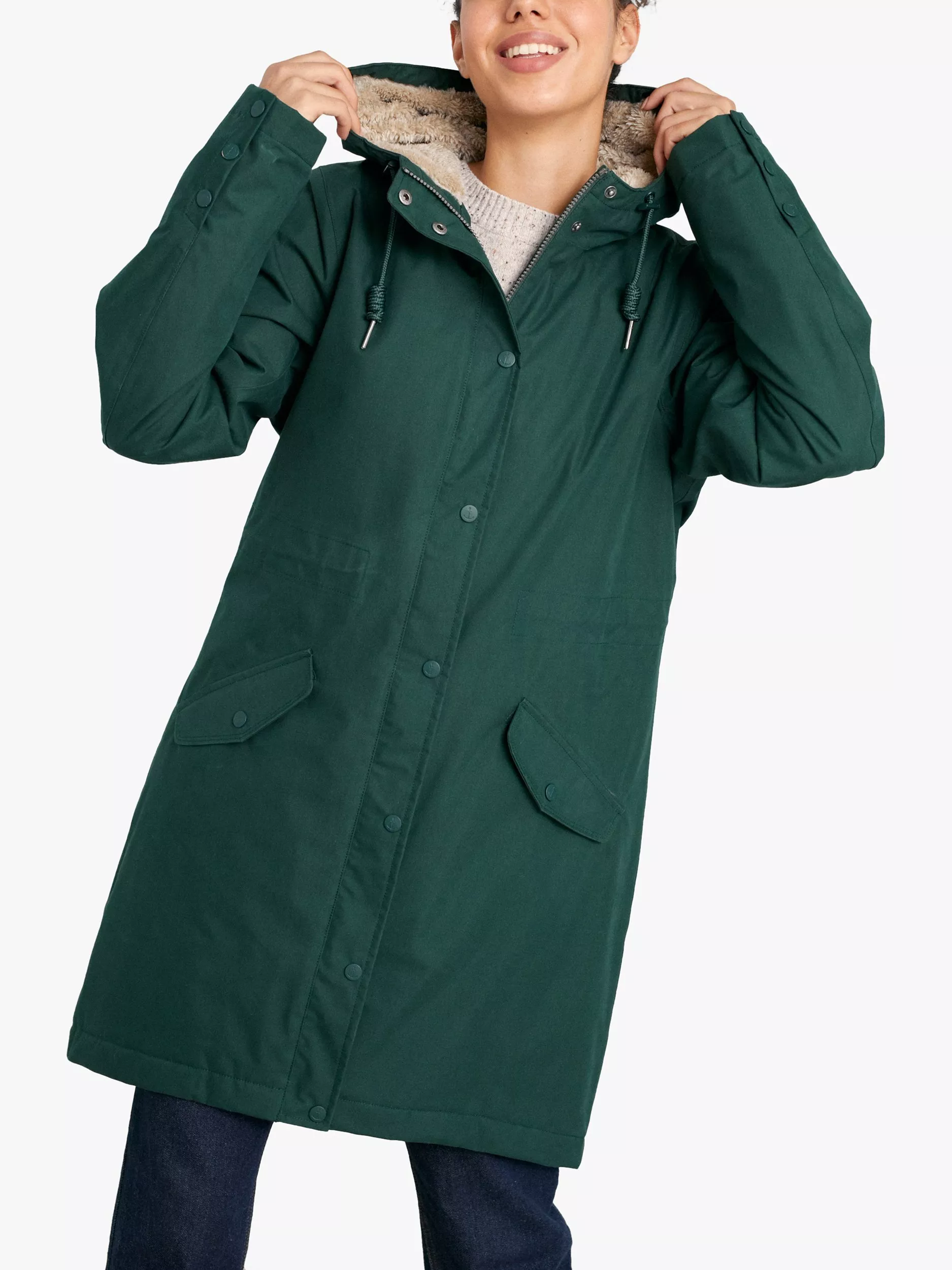 Warm and cosy with a fleece lining and padding, this parka by Seasalt gives plenty over coverage with its longer length hem. Designed with a practical hood, it is made from a comfortable cotton blend, with a plush lining through the body and hood, while the bottom half of the coat is lined with quilt padding. A drawcord adds shaping with handy flap stud pockets while the hi-tech waterproof treated Tin Cloth fabric keeps you dry.