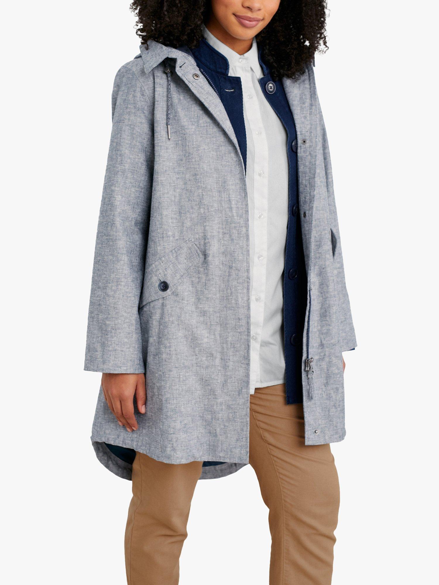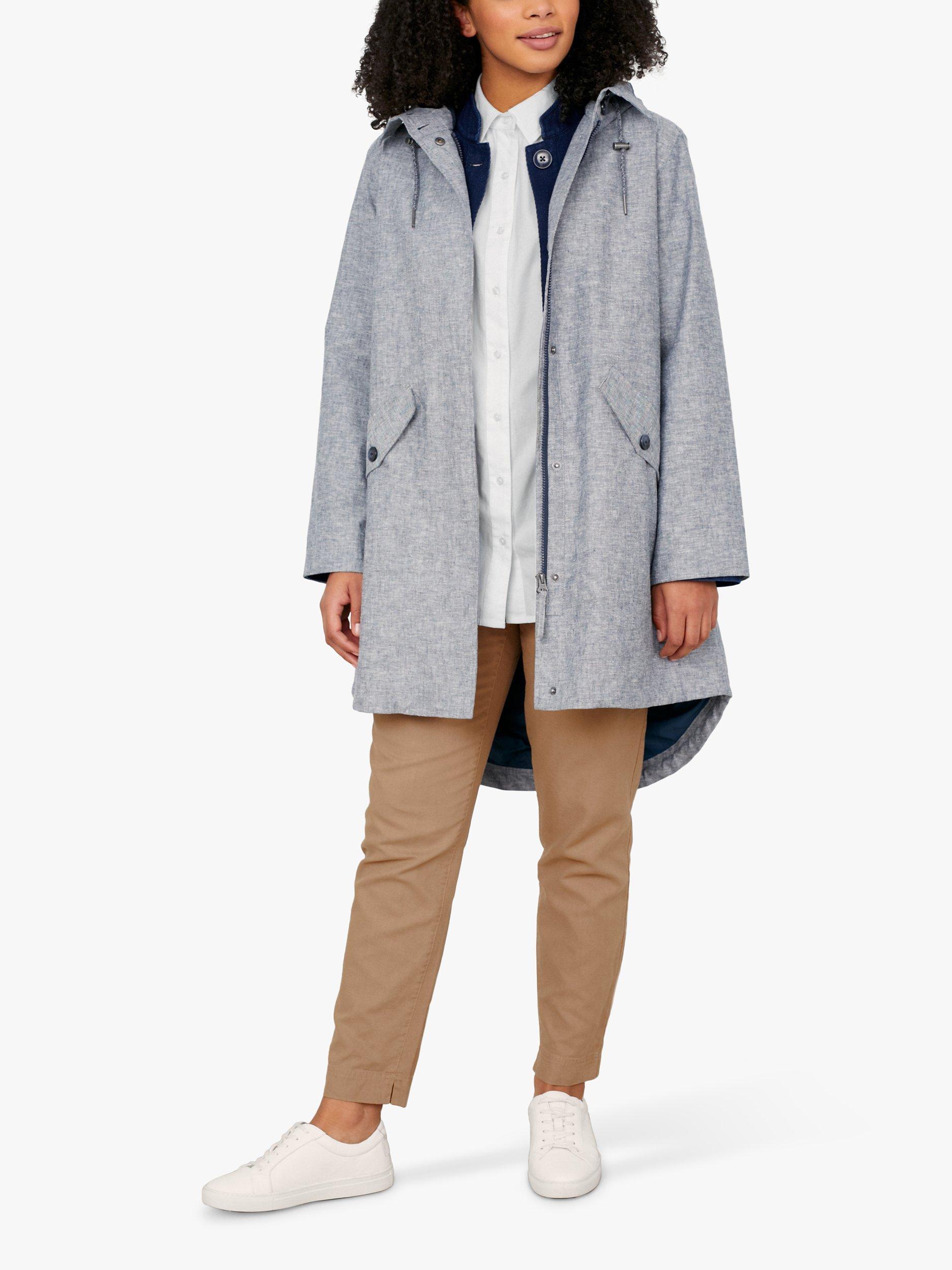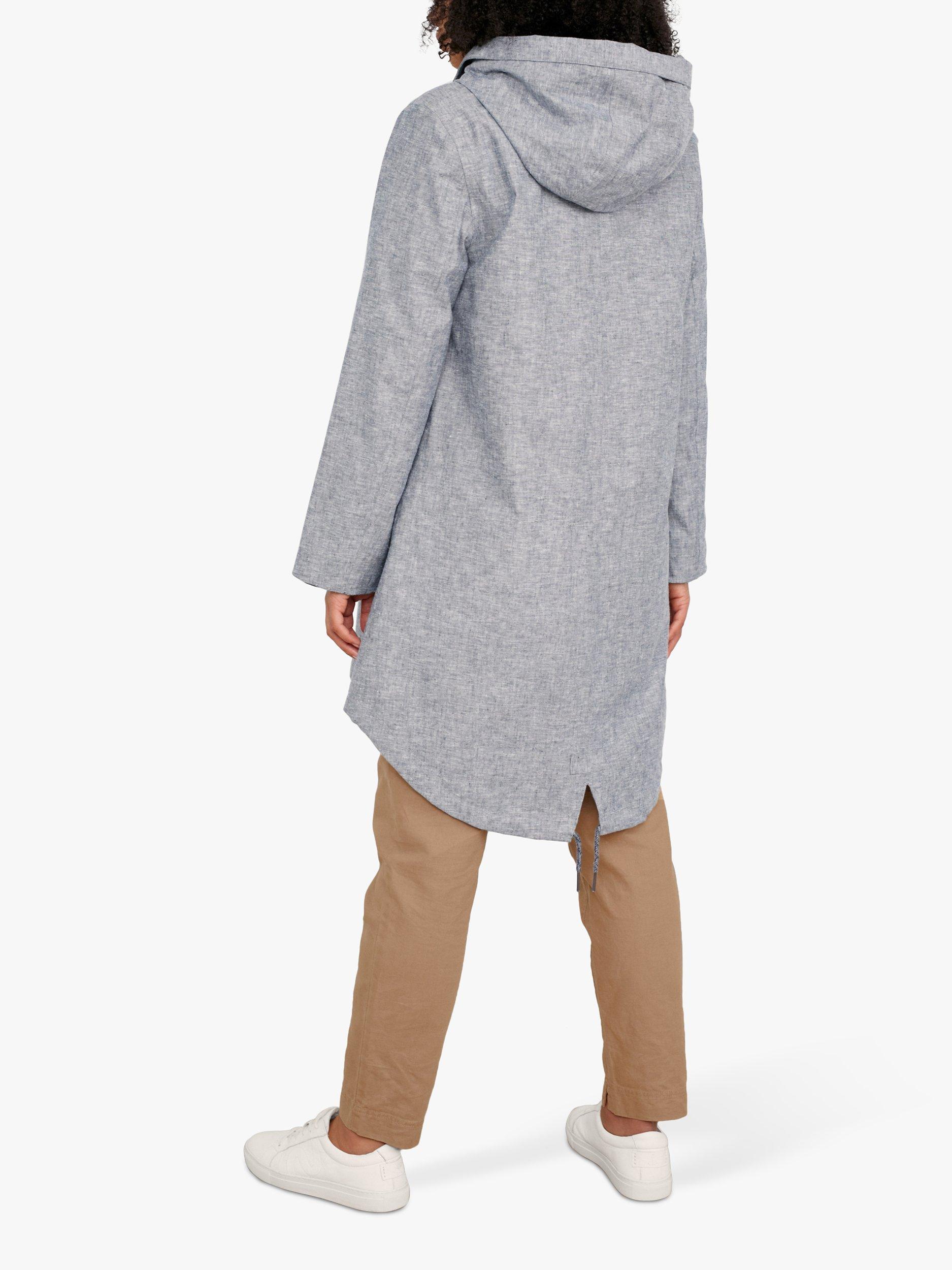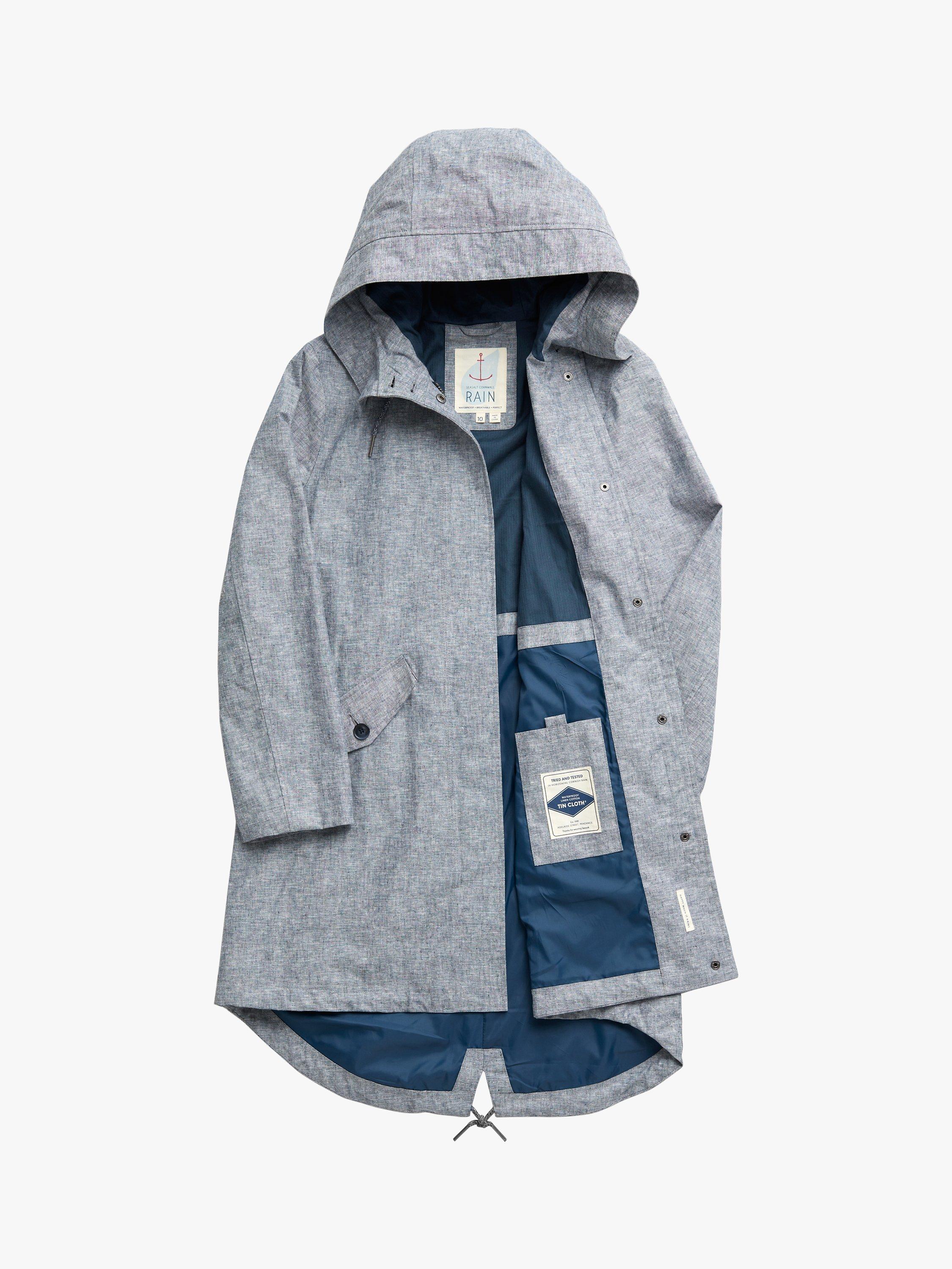 The Seafaring coat from Seasalt is a lighter weight style made from the brand's hi-tech waterproof treated Tin Cloth® in a cotton-linen blend. Tried and tested on Cornish clifftops, it has a longer dipped hem offering more coverage and handy spacious pockets.